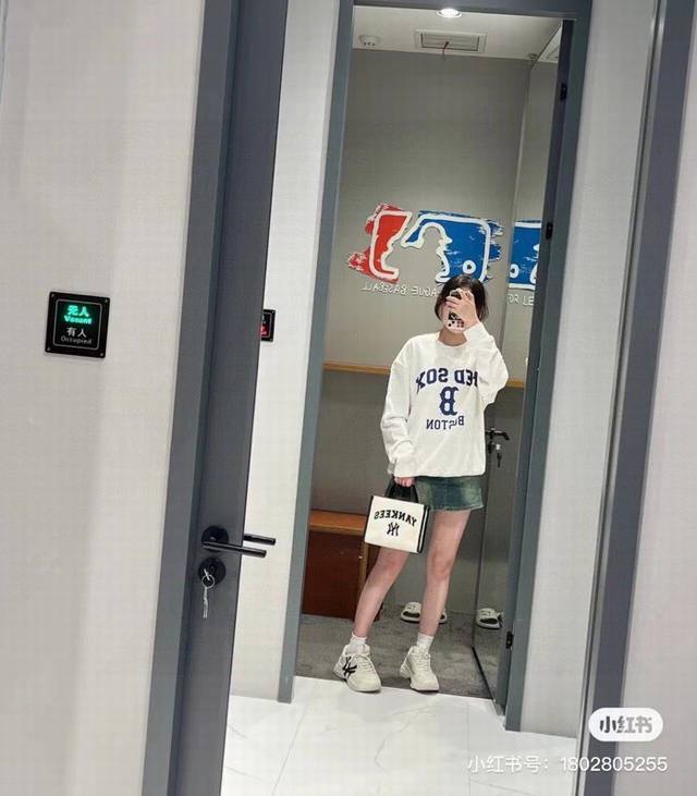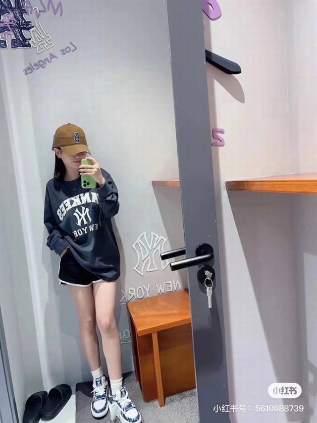 Mlb New Ny Letter Print Retro Campus Loose Versatile Unisex Couple Round Neck Sweatshirt