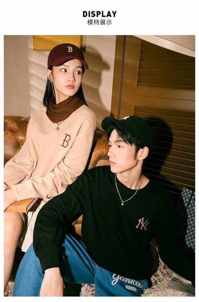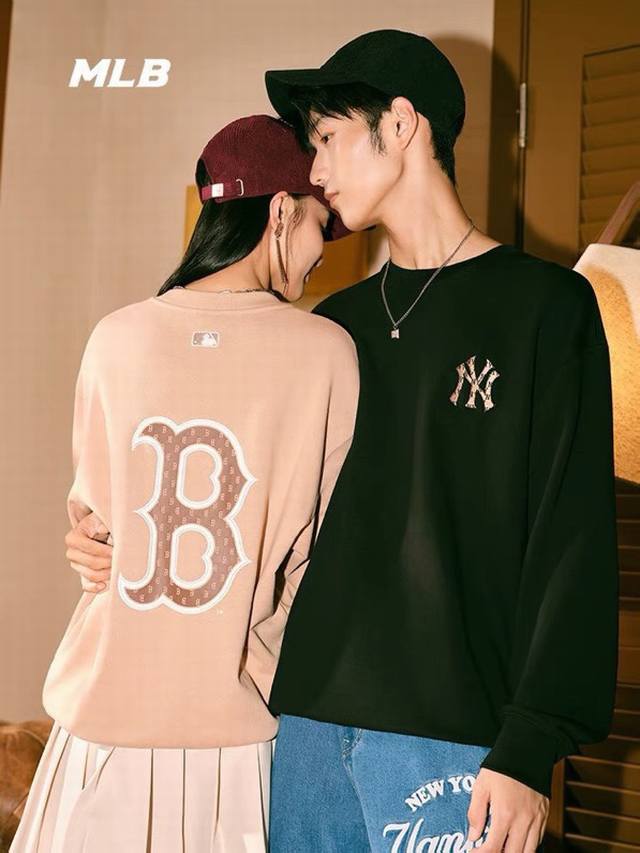 Mlb New Ny Retro Monogram Logo Pullover Loose Versatile Unisex Couple Style Crew Neck Sweatshirt