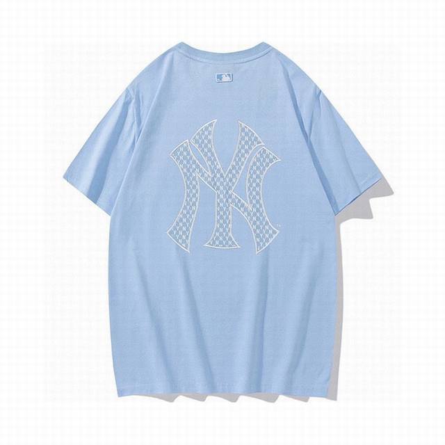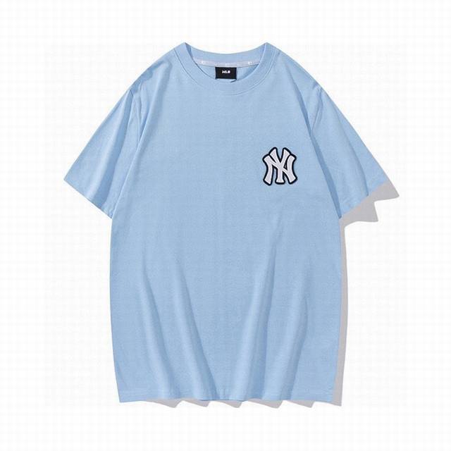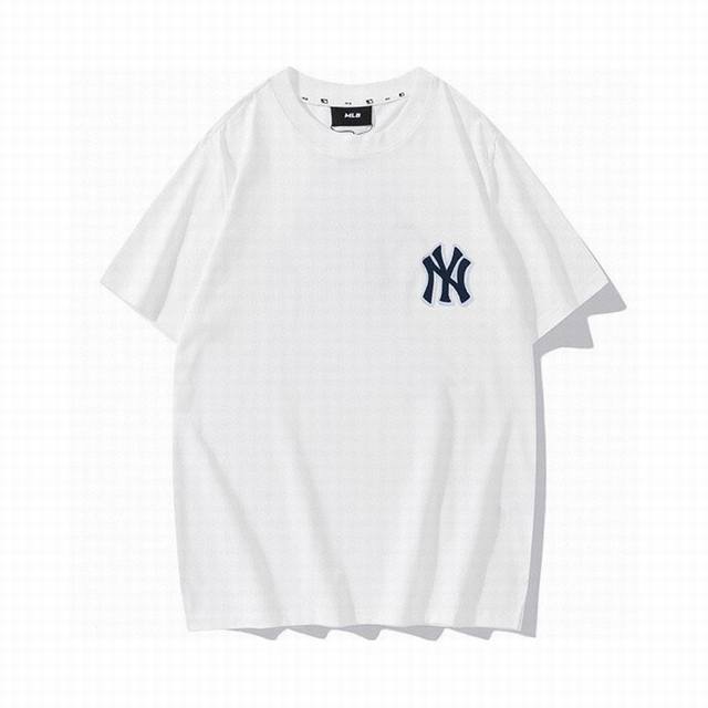 Korean trendy brand Mlb new short-sleeved shirt, unisex. The logo on the back is printed with embroidery along the edges, giving it a three-dimensional look. The colors are fresh and natural, making it lively and youthful, easily creating a summery vibe. Made with original 1:1 color and fabric, 0 color difference. The hangtag supports QR code verification. One shirt, one size. High-quality