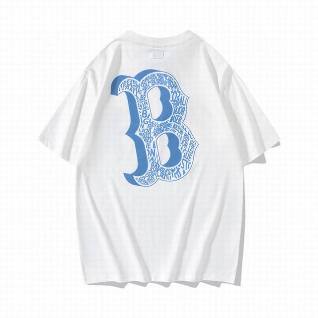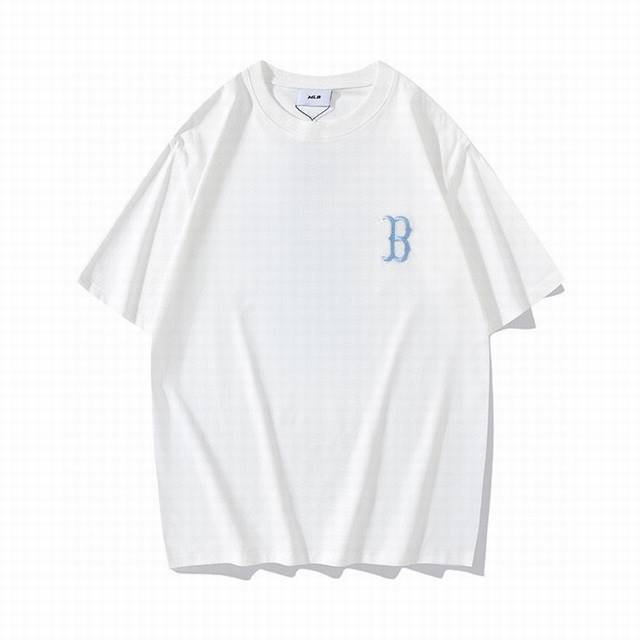 Korean Mlb 2025 New Versatile Small Label Embroidered Ny Unisex Simple Multi-Color Large Print Short-Sleeve T-Shirt Trendy Ins