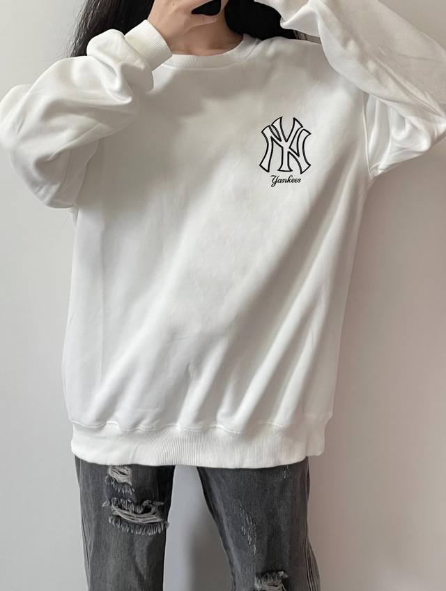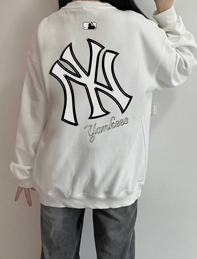 Mlb Yankees- Ny Slanted Logo Winter Fleece-Lined Thick Crew Neck Sweatshirt