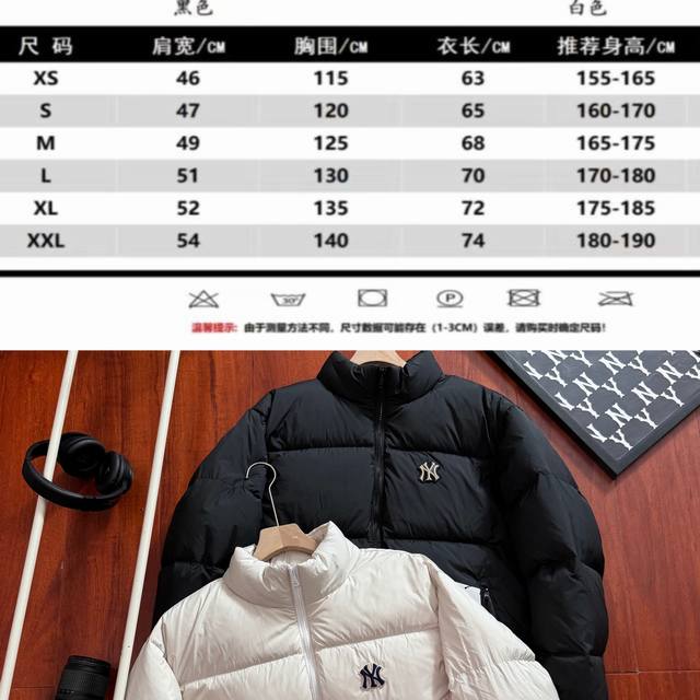 Top-tier original version with tote bag and chip sensor support. Comes with packaging box +10. | Mlb New York Yankees team lining all-over print with large logo on the back. Short down jacket. Colors: Black, White. Sizes: Xs-Xxl. Material and craftsmanship analysis: 1. 80% white duck down (national standard), exclusively using top-grade down on the market, no exaggeration of goose down or other misconceptions. 2. Outer fabric: 100% nylon; Lining: 100% nylon, the highest grade on the market, everything is customized according to the original. 4. Electroplated hardware from the original factory P, all original factory customization, not various replicas on the market. 5. Produced by the same factory P as a certain wolf brand, always uncompromising on quality. Everyone knows the craftsmanship of workers, QA and QC inspections are incomparable to small factories on the market.