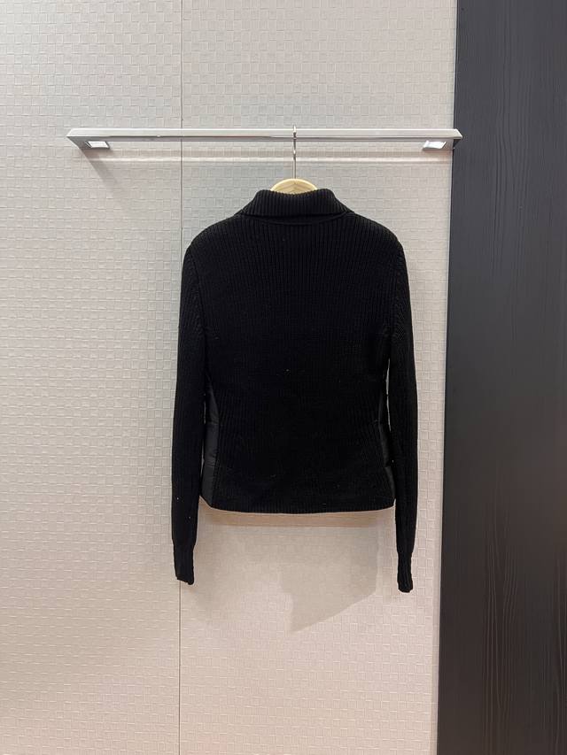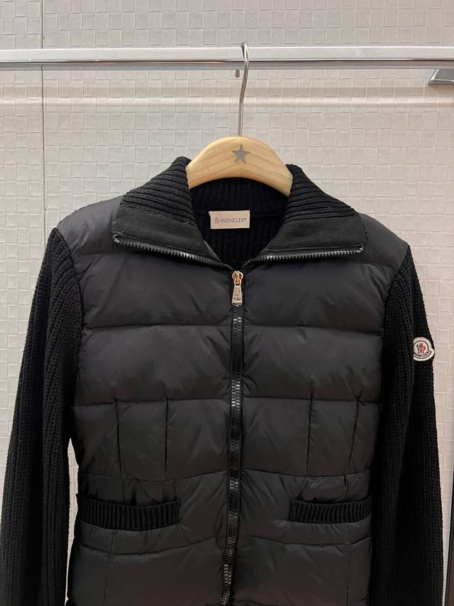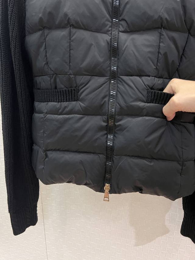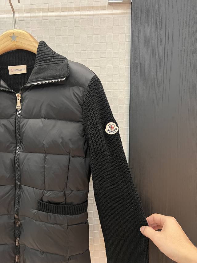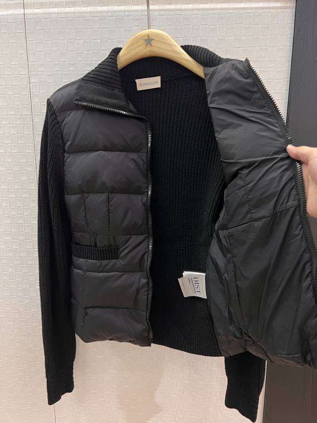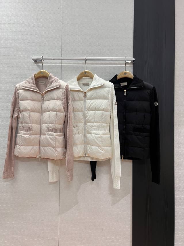 Autumn/Winter New Moncler Collar Knitted Patchwork Down Jacket, Side Pockets, Cable Knit Cuffs, Classic Sleeve Label, Logo Decoration, Warm, Slim Fit, Stylish, Fashionable, Versatile, 90% Down, 10% Feather Fill, Black, Pink, White, S-XL,