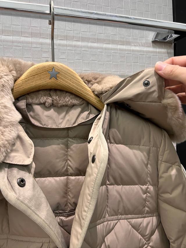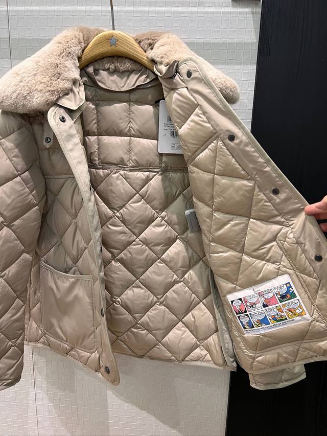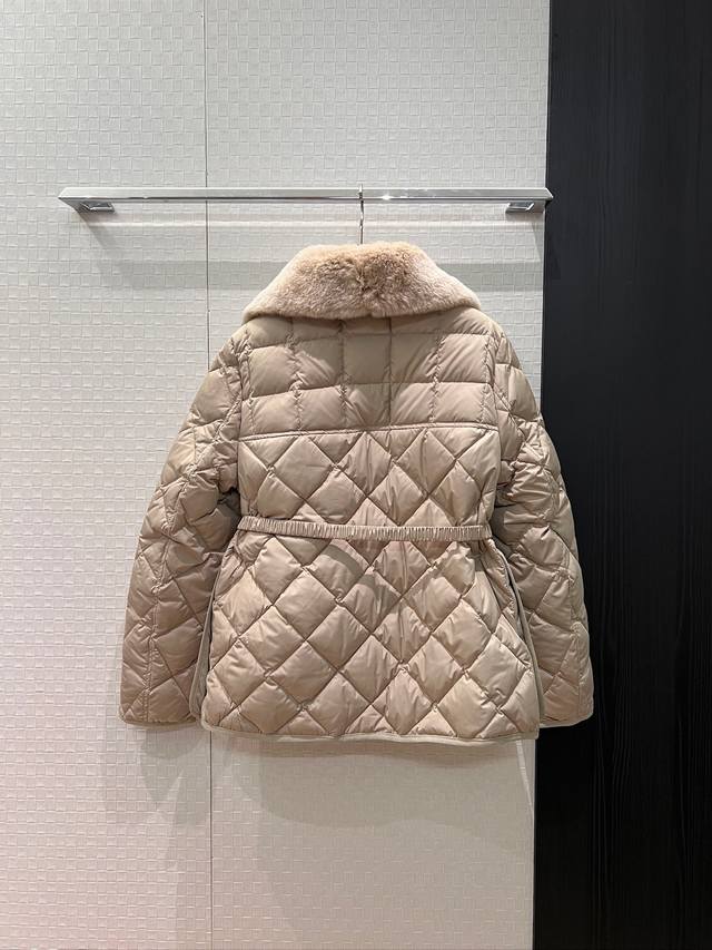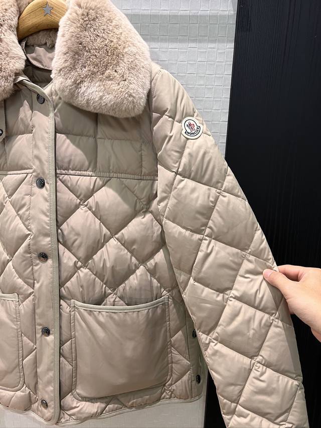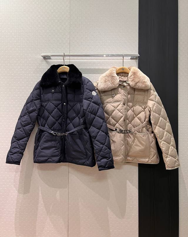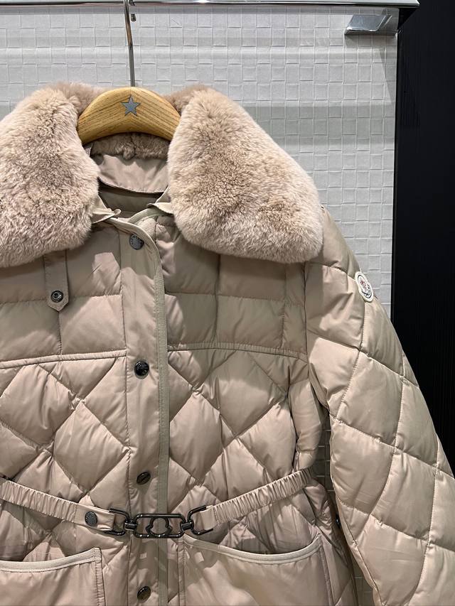 Autumn/Winter New Moncler Fur Collar Two-Way Design Elastic Waist Belt Decoration Slimming Diamond Pattern Down Jacket Coat Detachable Fur Collar Classic Sleeve Label Decoration Hardware Accessories Mold Opening 90% Down 10% Feather Warmth Essential Age-Reducing Suitable for All Body Types Dark Blue Khaki 1-4 DDD