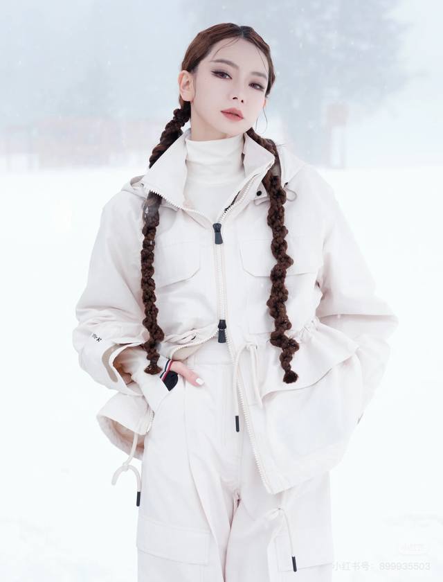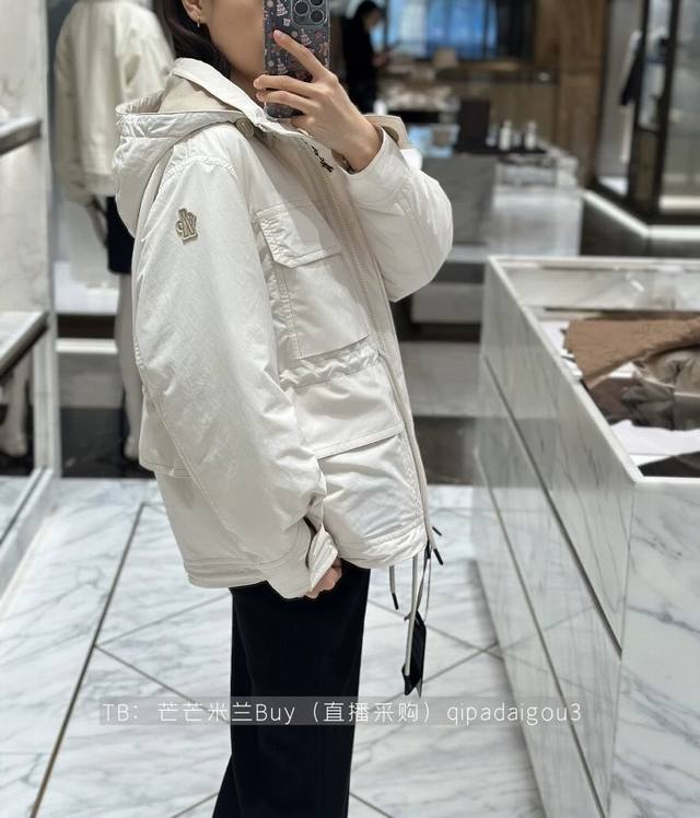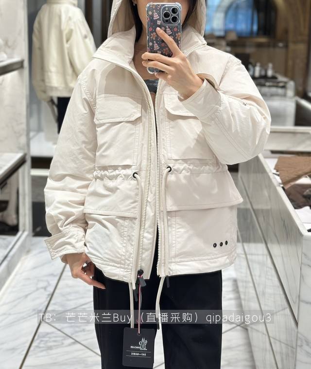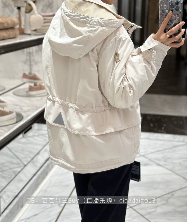 Moncle*New Arrival on the Official Website: Top-Tier Version, High-End Boutique, 1:1 Customization. Features original letter logo hardware, 90% goose down filling (national standard), and complete inner labeling. Celebrity style, Qi Wei's same style ski down jacket! Drawstring waist design, flap pockets, workwear style, fashionable zipper placket, stand collar, hooded parka jacket. Includes a dust bag! Available in greyish-white, camel, and 00-0-1-2. Size 0: Shoulder width 50cm, underbust 122cm, sleeve length 56cm, garment length 64cm.
