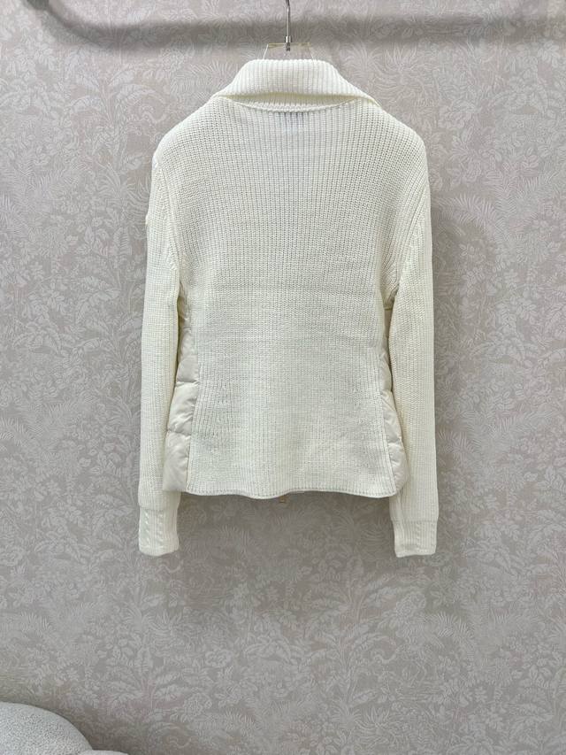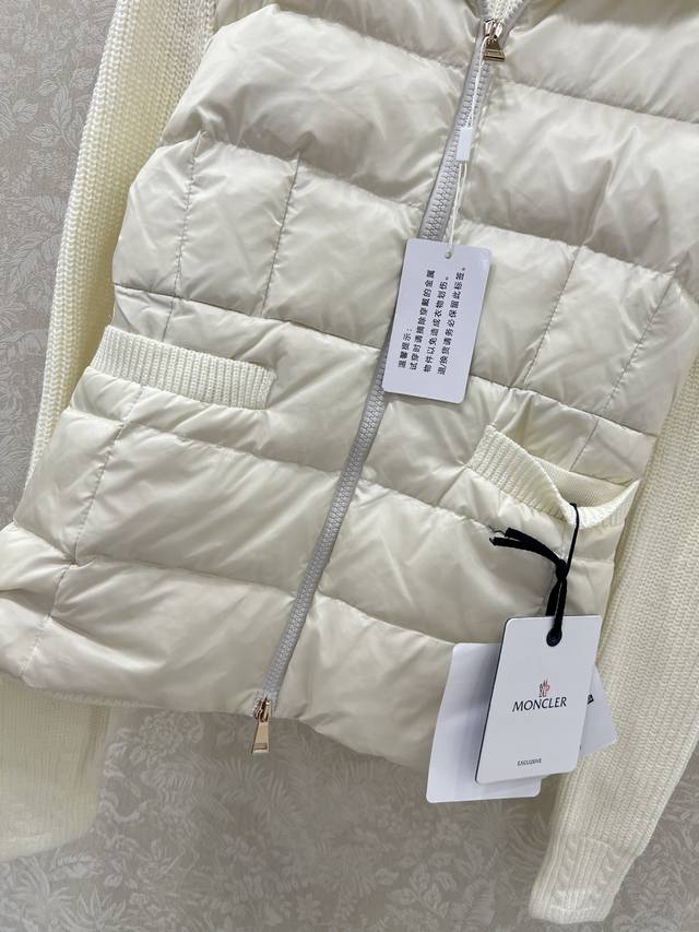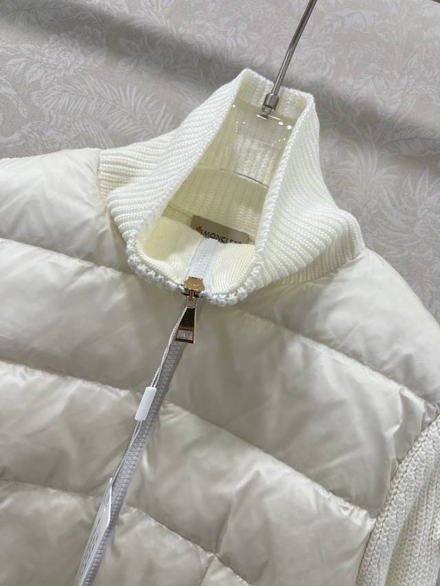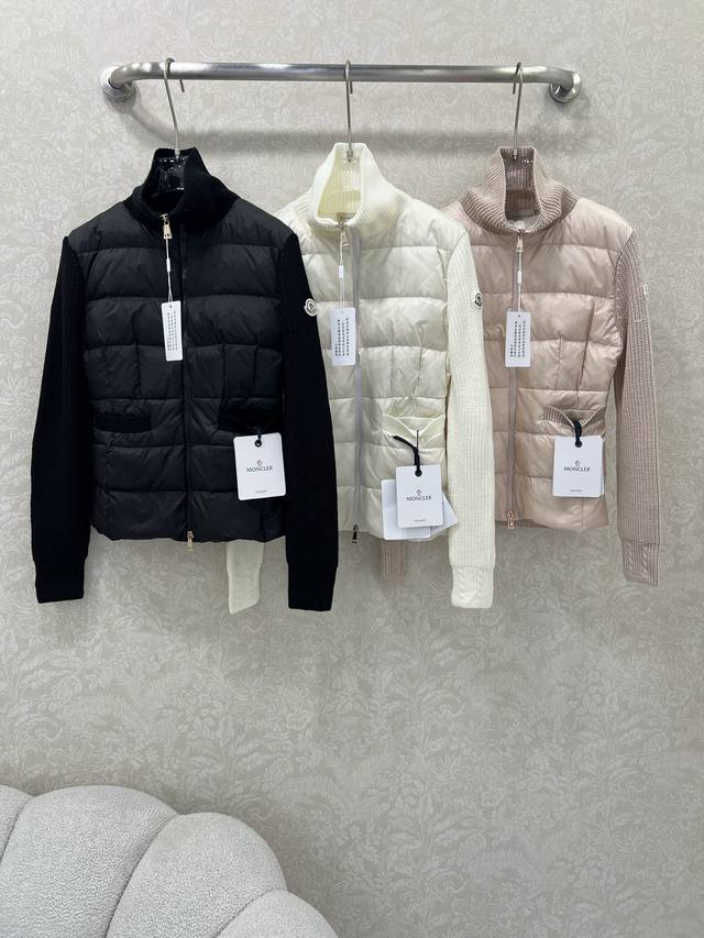 Moncler 2025 New Patchwork Knit Pocket Women's Down Jacket: A perfect balance of warmth and style. Filled with 90% rare goose down, fearless in sub-zero temperatures, lightweight and heat-locking. Innovative wool knit sleeves with a soft touch and a three-dimensional silhouette that avoids bulkiness. High-end aesthetic with contrasting materials and matte stitching. Black down + delicate wool texture. Turtleneck sweater layering demonstration: a lazy yet sophisticated winter outfit that can be worn for ten years. 3 colors, 3 sizes. Smlb DDD
