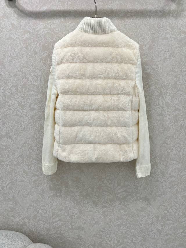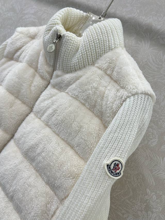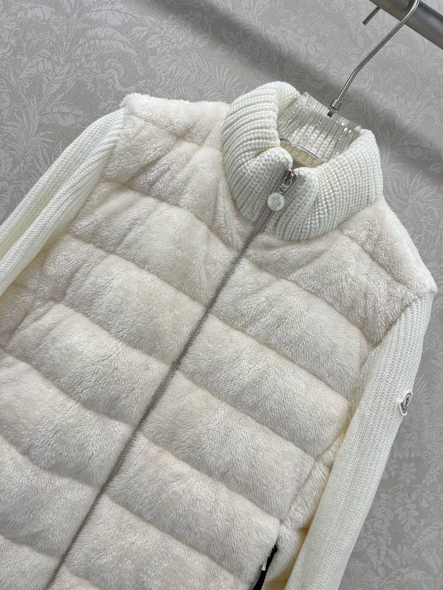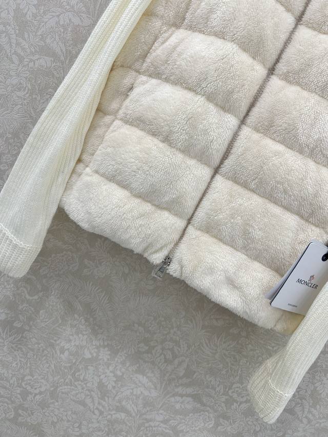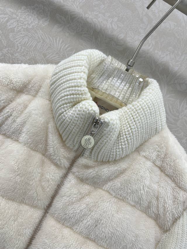Moncler 2025 New Stand Collar Wool Knit Patchwork Down Jacket! A winter essential and an early autumn must-have. The stand collar, quilted short style is versatile and flattering for all body types. The hidden pocket design is youthful and stylish. Original custom-made 90% white goose down filling! Imported lightweight memory silk fabric, breathable and lightweight! Imported machine-stitched seams. Looks clean and stylish. Original hardware, original label, 3 colors, 3 sizes.