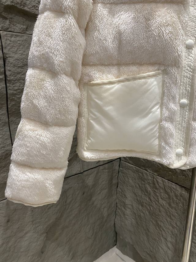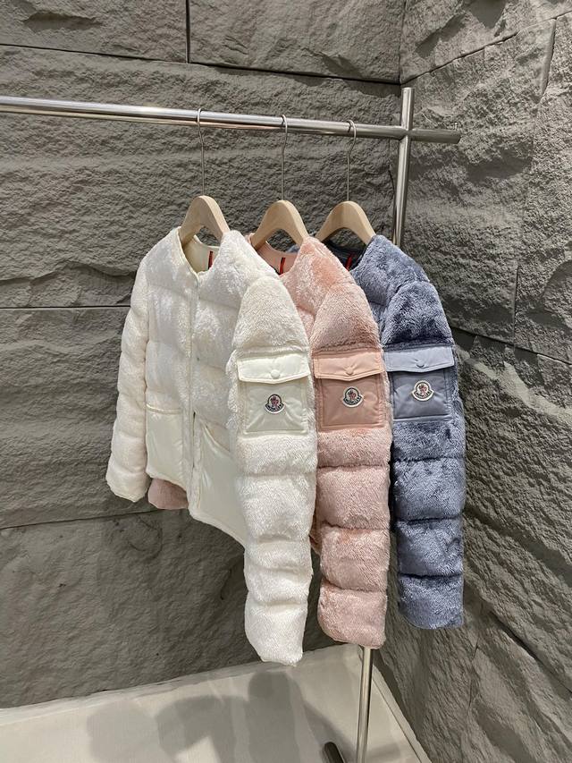 Moncler Fall/Winter 2025 Floyrac Women's Teddy Cropped Down Jacket DDD Crafted from soft teddy fleece fabric, Floyrac reimagines the classic down jacket. The cropped design features matte nylon details that contrast with the soft texture of the teddy fleece. Patch pockets on the sleeves pay homage to the brand's essence. This warm piece has a cropped silhouette that easily layers with elegant or casual pieces. Colors: White, Pink, Grey Sizes: 0 1 2 3 DDD