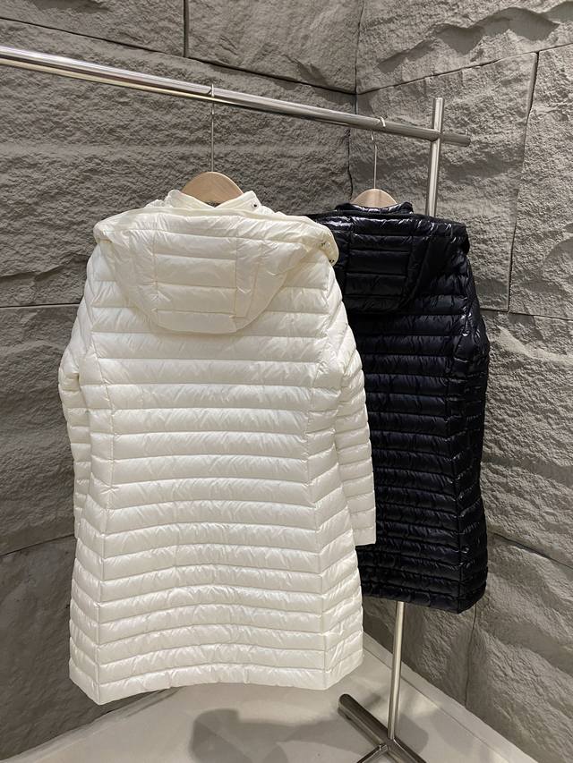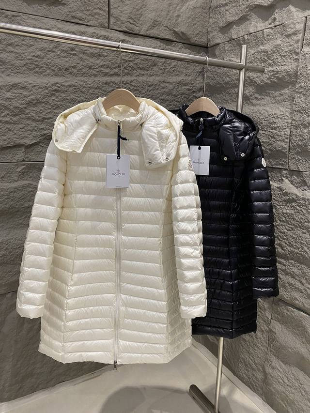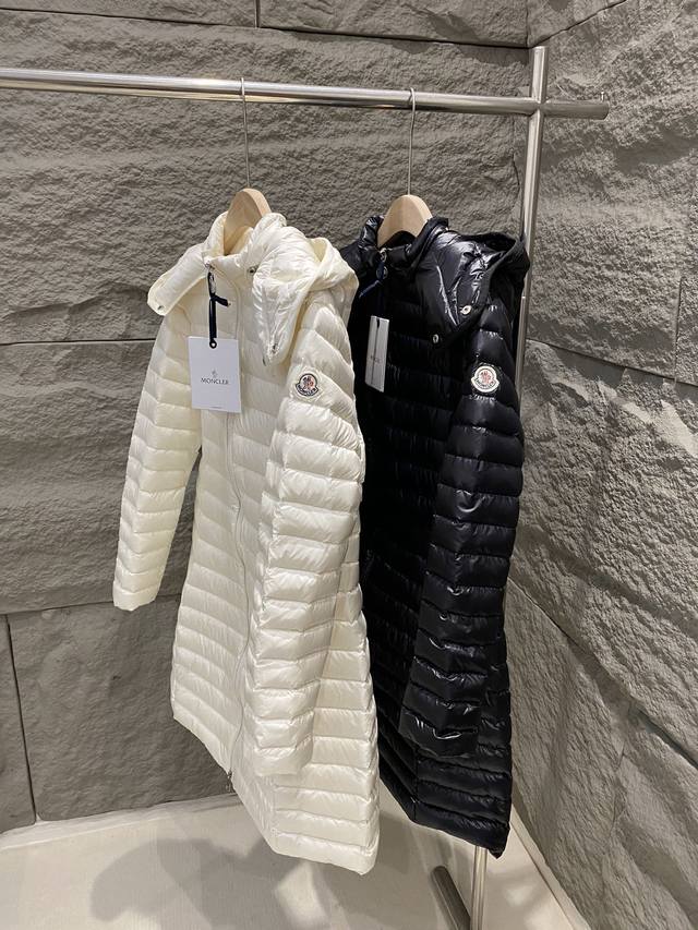 Moncler Fall/Winter 2025 New Arrival: Igelong Hooded Long Down Jacket for Women. Made from Longuesaison fabric, this Igelong down jacket offers everyday comfort. This nylon provides warmth without feeling bulky, making it suitable for mild weather. The long design features a slim fit and a cinched waist for a flattering silhouette. Colors: Ivory, Black. Sizes: 1 2 3 4 DDD