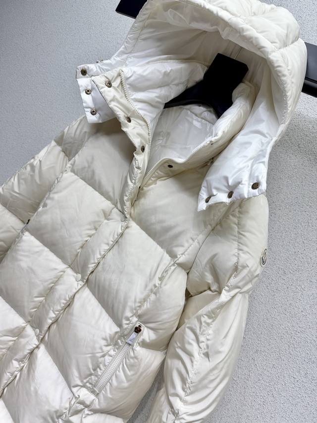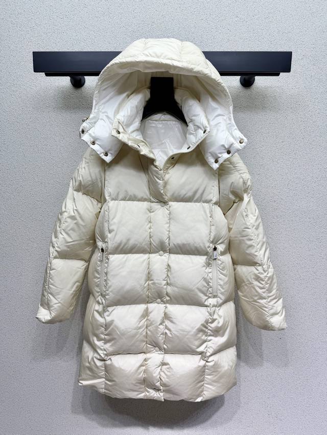Moncler mid-length hooded down jacket with excellent overall warmth. Regular style, casual, fashionable, and high-quality. Available in sizes 1, 2, 3, and 4.
