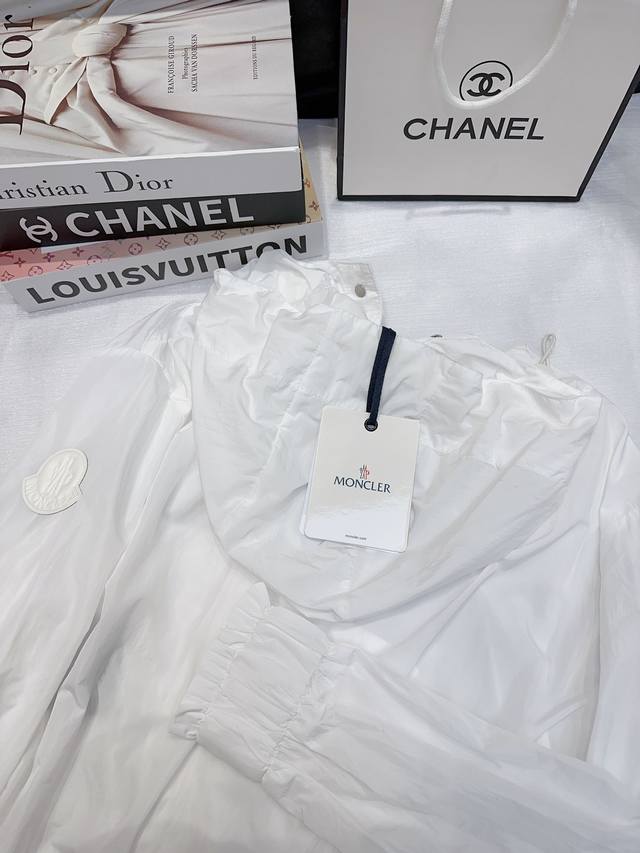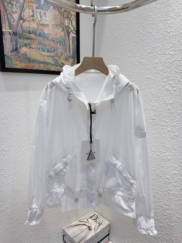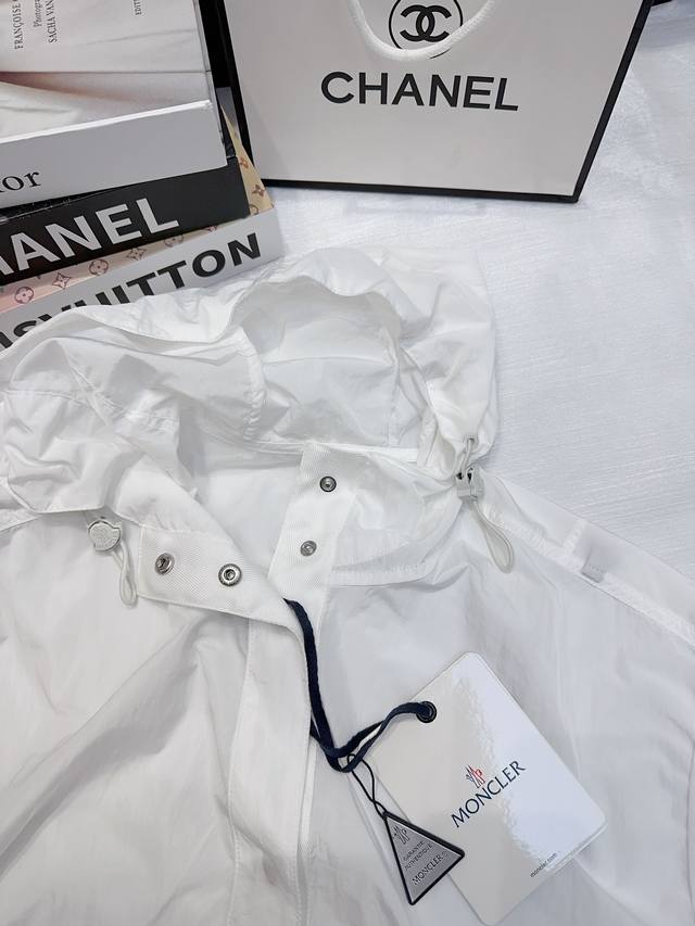 Moncler! Specialty model! High version! Customized letter logo badge metal hardware button hooded sun protection jacket! Three labels complete! Three colors! Size 0 1 2, ready to ship! Size 0 bust 116 length 62