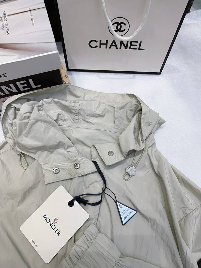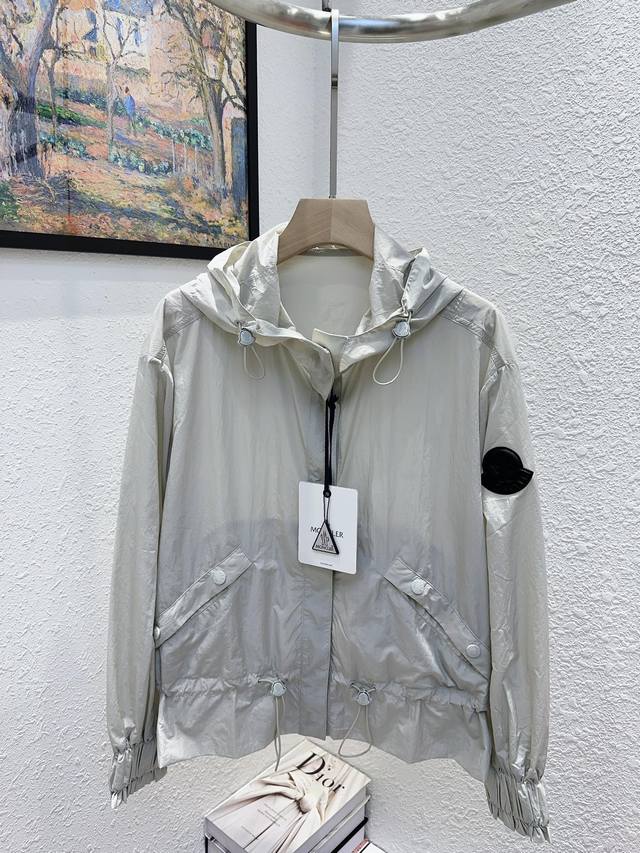 Moncler! Specialty model! High version! Customized letter logo badge metal hardware button hooded sun protection jacket! Three labels complete! Three colors! Size 0 1 2, ready to ship! Size 0 bust 116 length 62