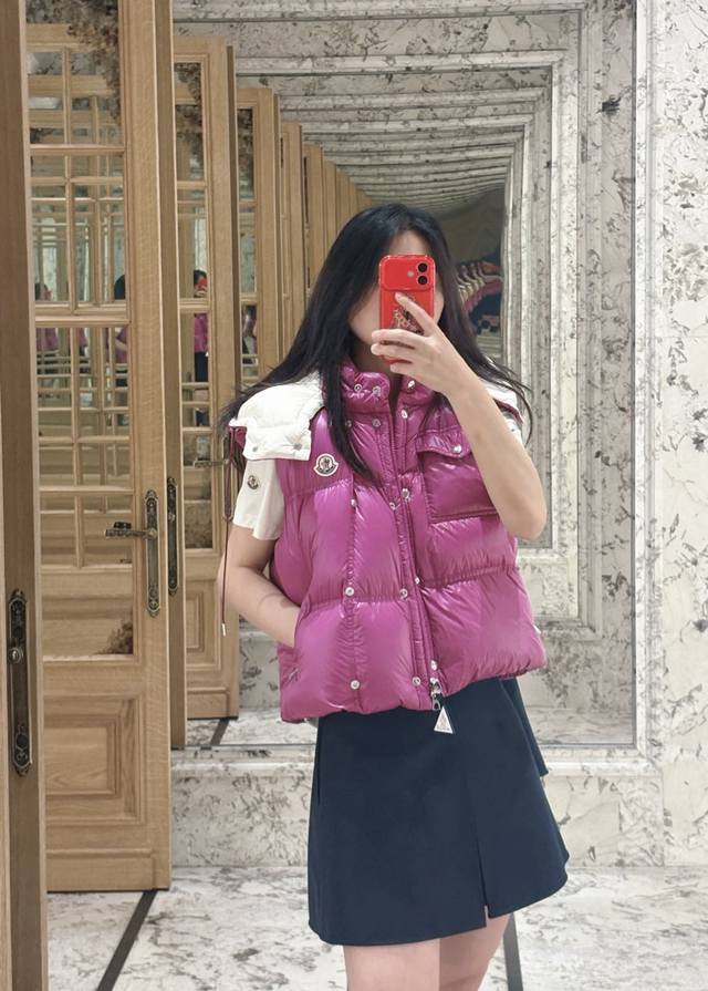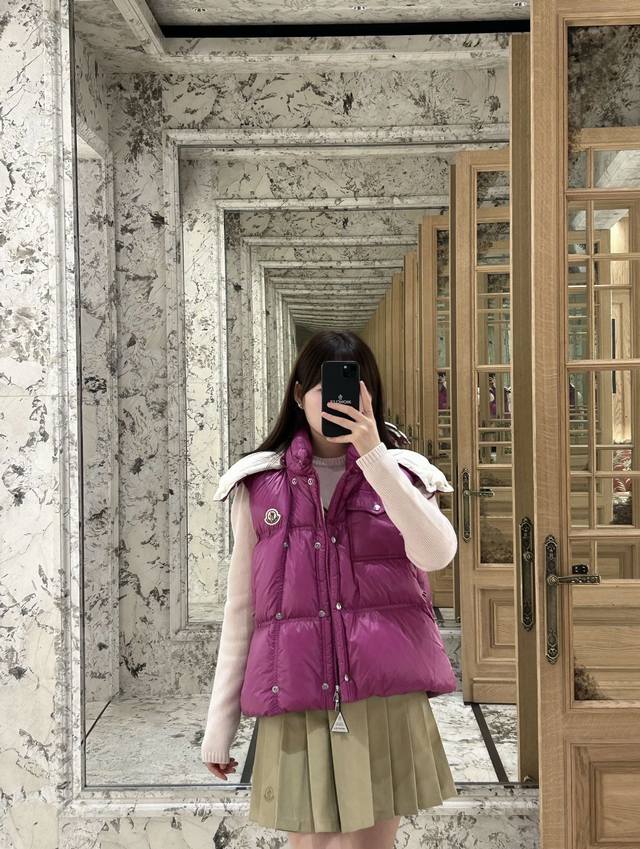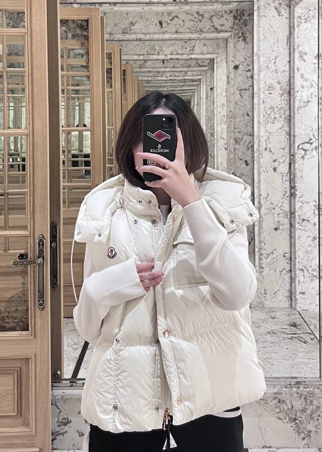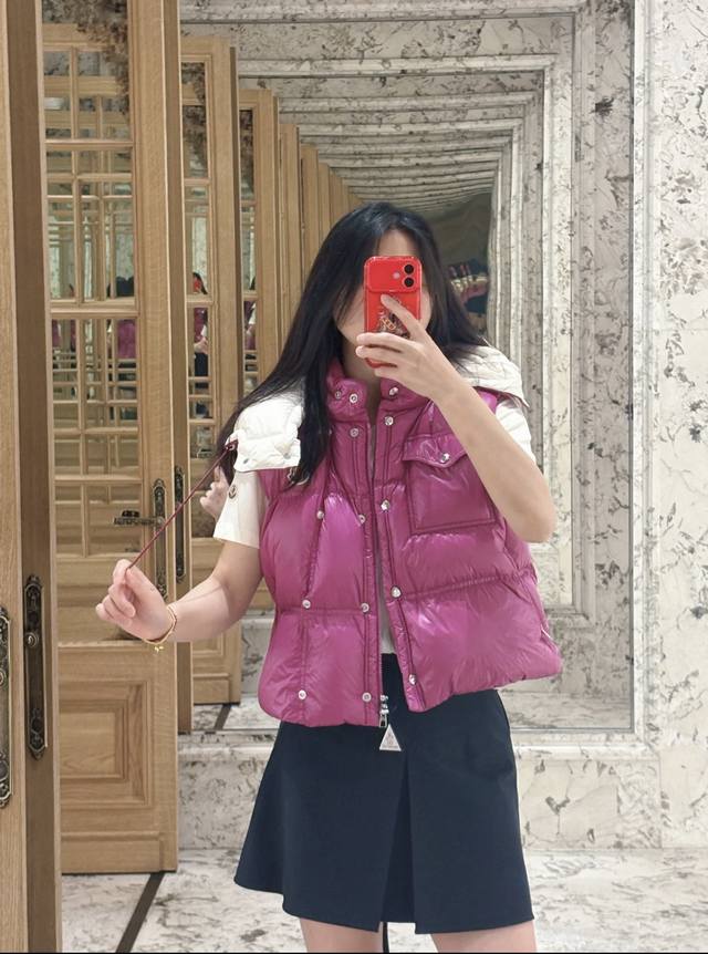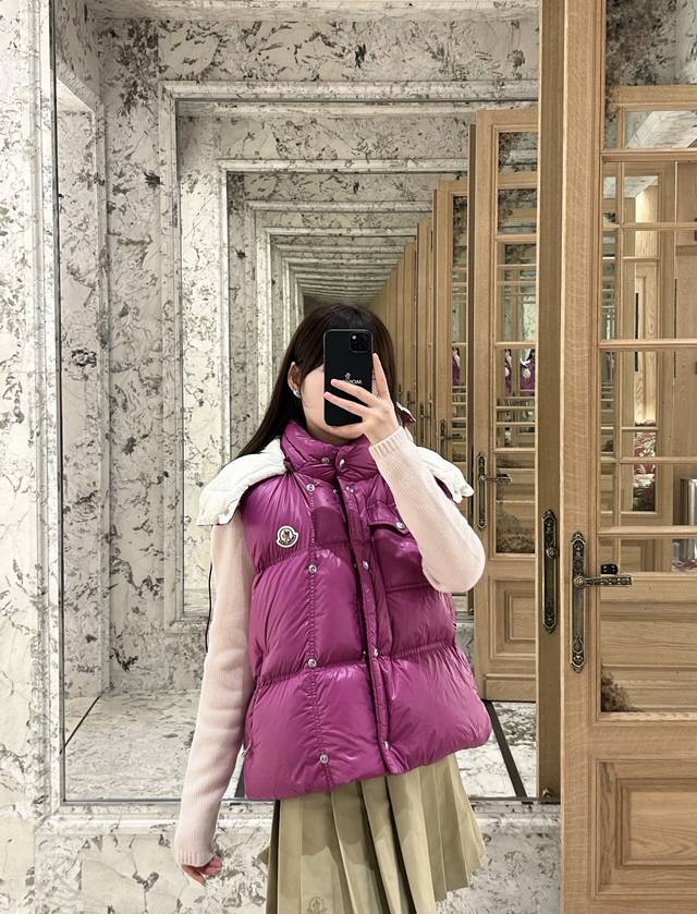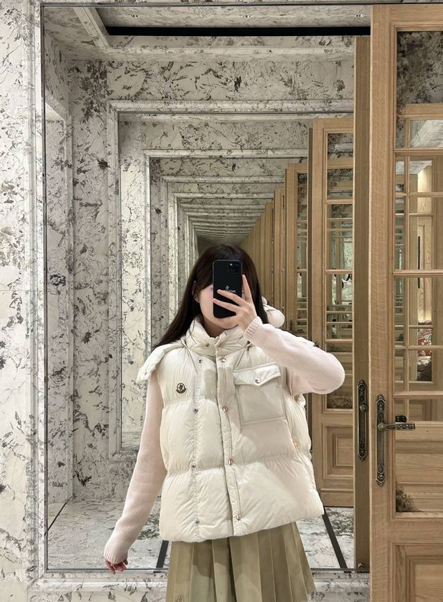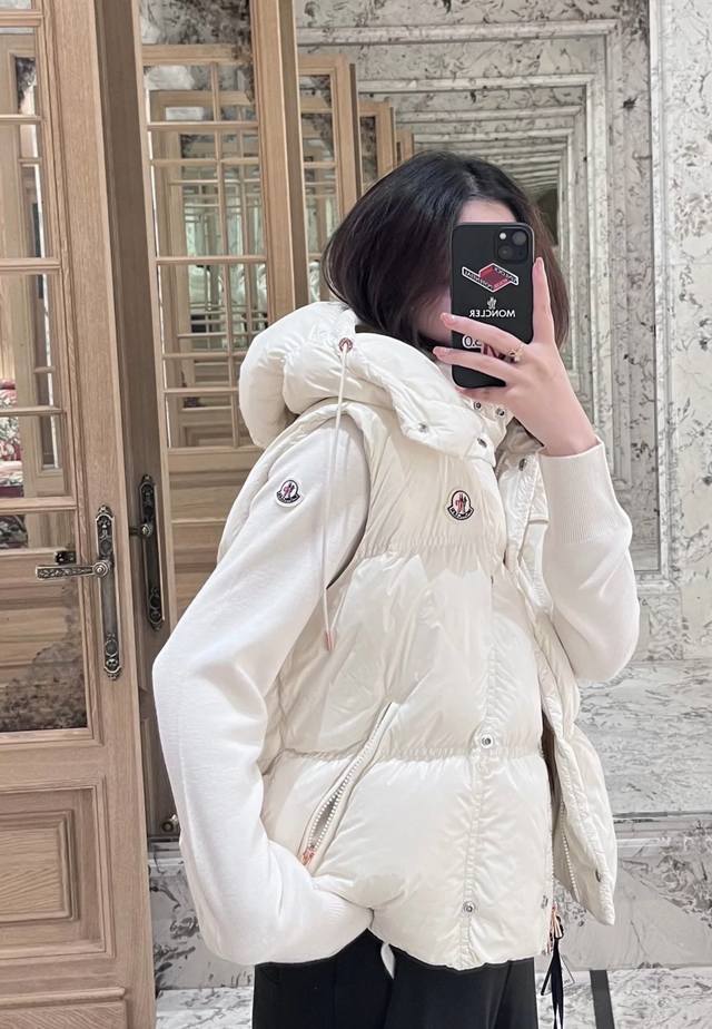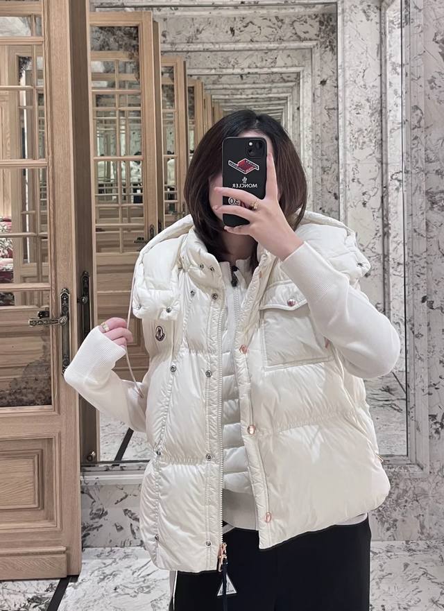 Moncler's new early fall 25 down vest with a detachable hood and stand-up collar