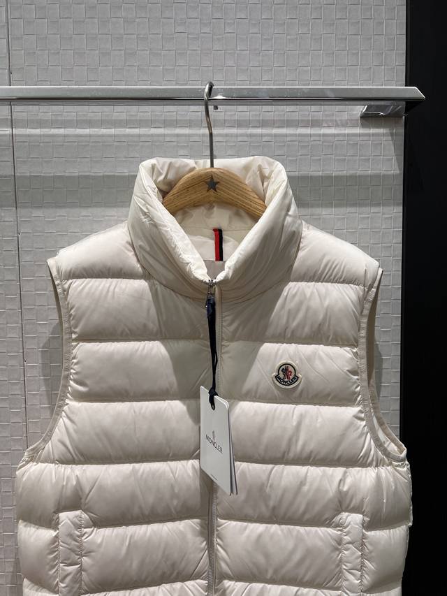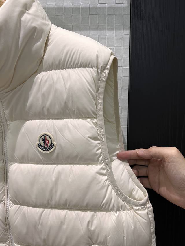 New Moncler Classic Stand Collar Goose Down Vest with Logo Badge Decoration on Chest, Logo Print, Webbing Edge, Mold Opening, Hardware, 90% Down, 10% Feather, Loose Fit, Casual, Unisex, Age-Reducing, Versatile, Black, White, Khaki, 1-5