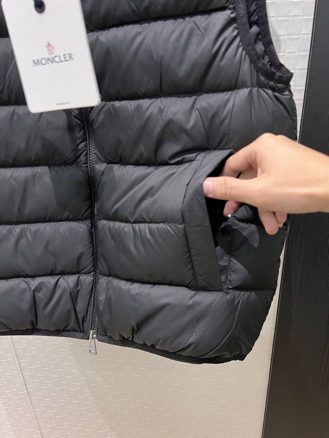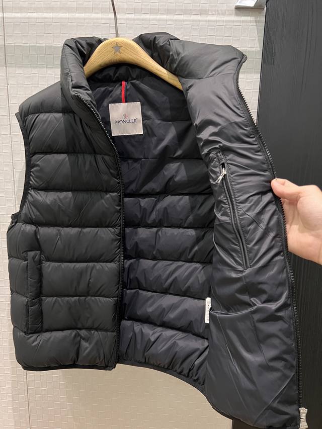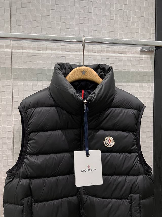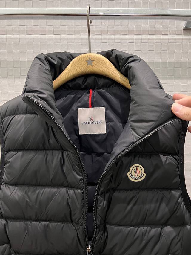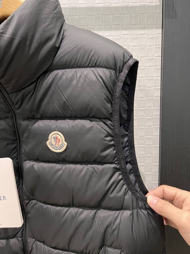 New Moncler Classic Stand Collar Goose Down Vest with Logo Badge Decoration on Chest, Logo Print, Webbing Edge, Mold Opening, Hardware, 90% Down, 10% Feather, Loose Fit, Casual, Unisex, Age-Reducing, Versatile, Black, White, Khaki, 1-5