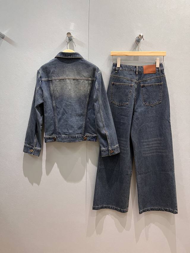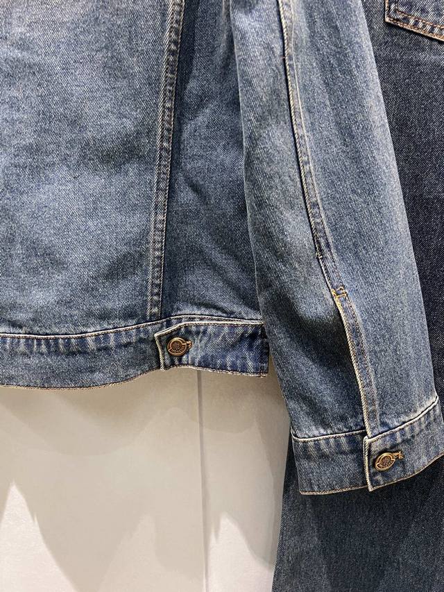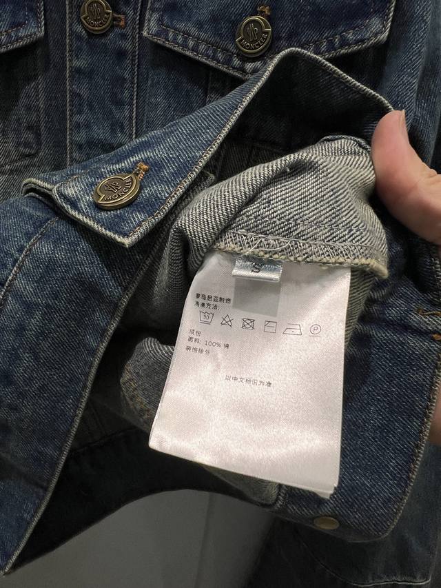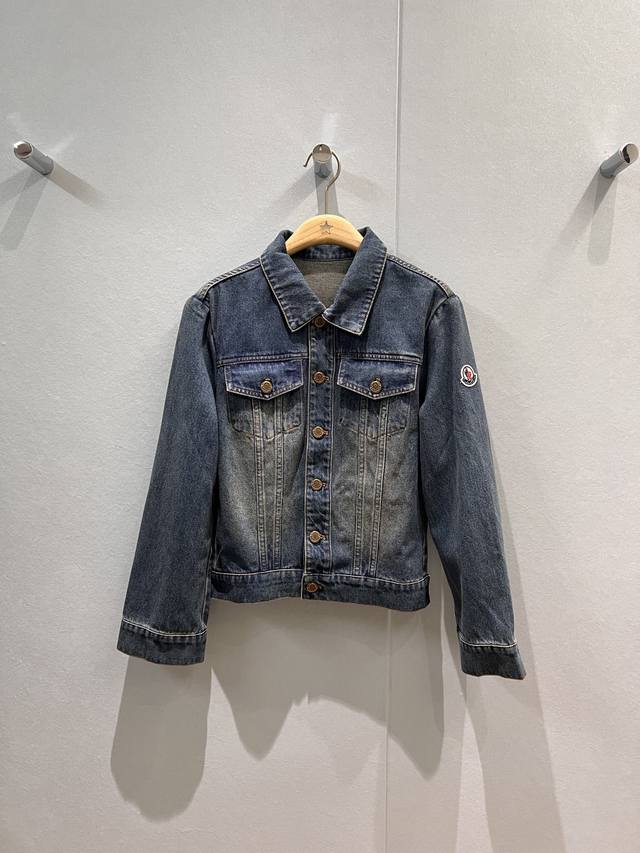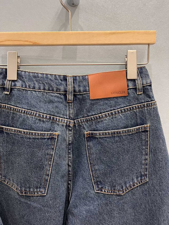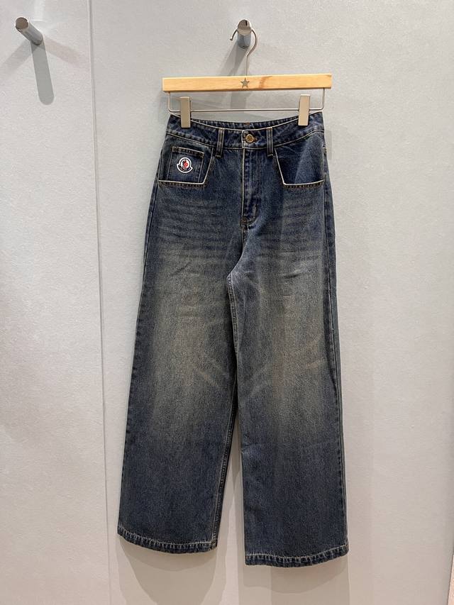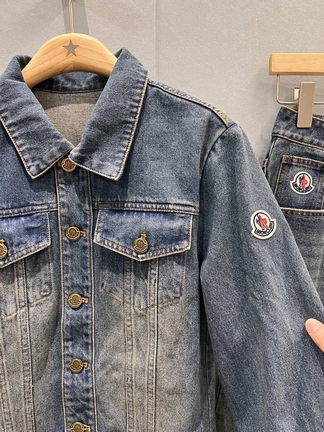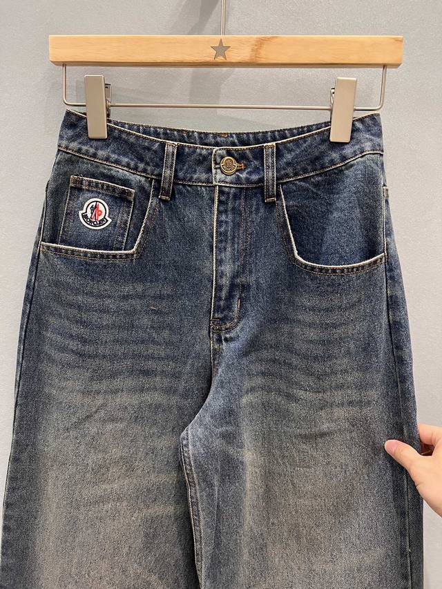 New styles of jackets and trousers are coming. Moncler denim jacket, straight-leg wide-leg jeans, classic sleeve logo badge decoration, hardware accessories, open mold, sweet and cool, age-reducing, casual and versatile Sml