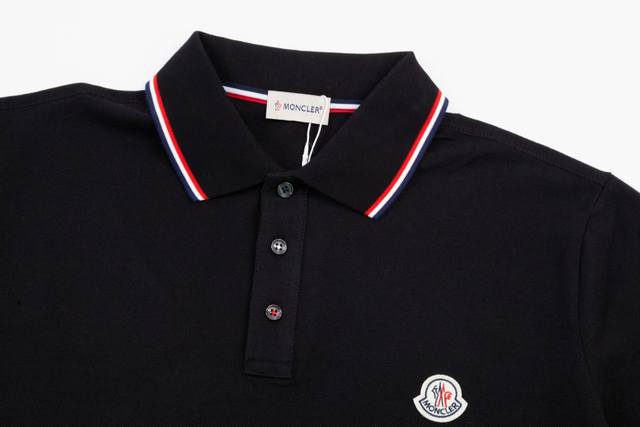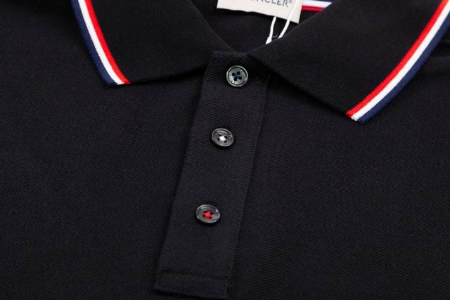 Original custom Moncler Polo, pure handmade custom shell buttons, buttons are sewn with three-color needlework, red, white and blue, anti-counterfeiting details are in place, three labels are complete, fine workmanship, no head, flawless cuff webbing