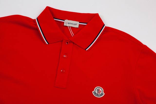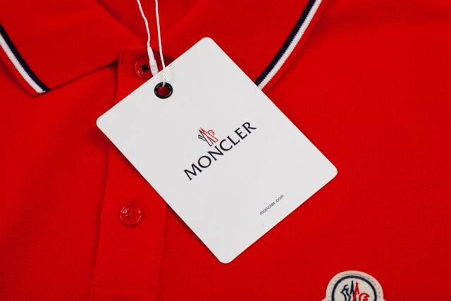 Original custom Moncler Polo, pure handmade custom shell buttons, buttons are sewn with three-color needlework, red, white and blue, anti-counterfeiting details are in place, three labels are complete, fine workmanship, no head defects, cuff webbing