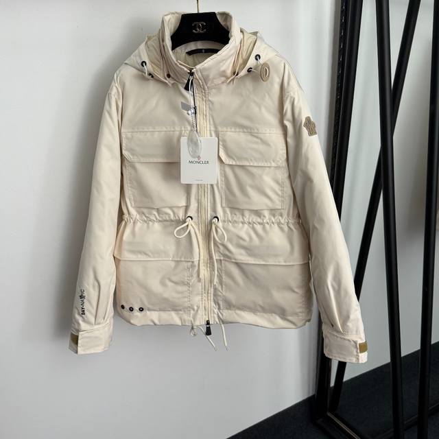 Style No. 20257067 Moncle* New Moncleus Velcro Cuffs, Four Pockets, Drawstring Waist, Long Sleeve Hooded Down Jacket, Detachable Hood, Available in Off-White, Khaki, and Black, Sizes S, M, and L. Size M: Shoulder Width 47cm, Chest 118cm, Sleeve Length 61cm, Length 67cm; Weight: 1.020kg. DDD