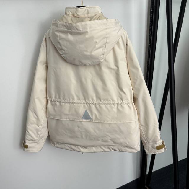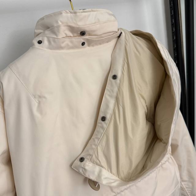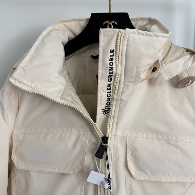Style No. 20257067 Moncle* New Moncleus Velcro Cuffs, Four Pockets, Drawstring Waist, Long Sleeve Hooded Down Jacket, Detachable Hood, Available in Off-White, Khaki, and Black, Sizes S, M, and L. Size M: Shoulder Width 47cm, Chest 118cm, Sleeve Length 61cm, Length 67cm; Weight: 1.020kg DDD