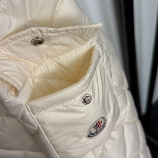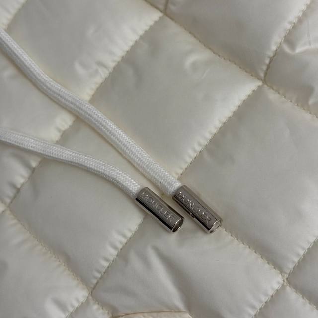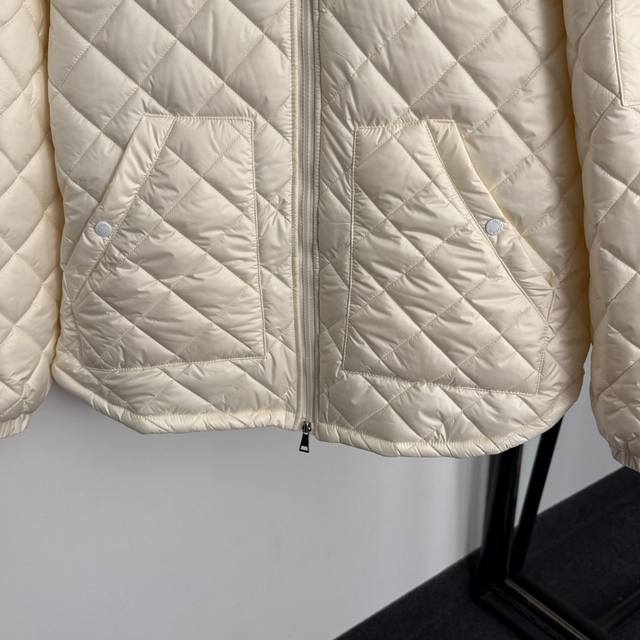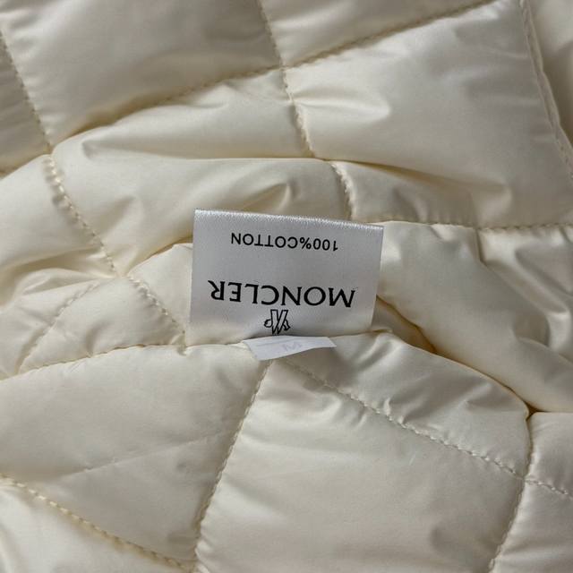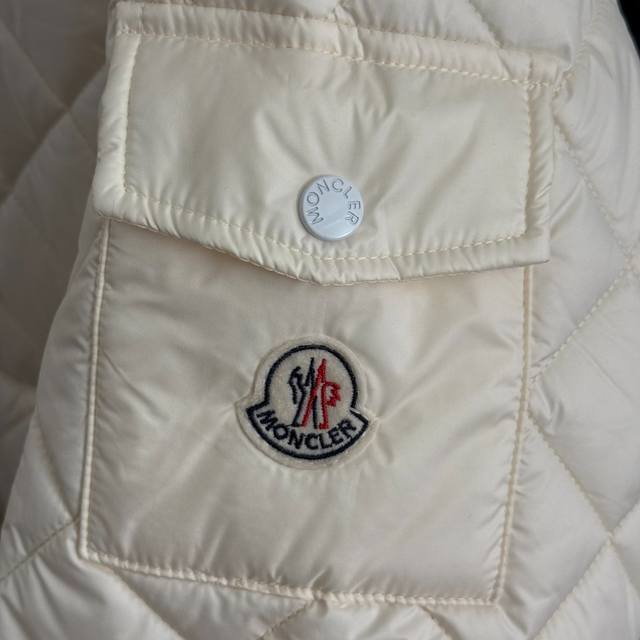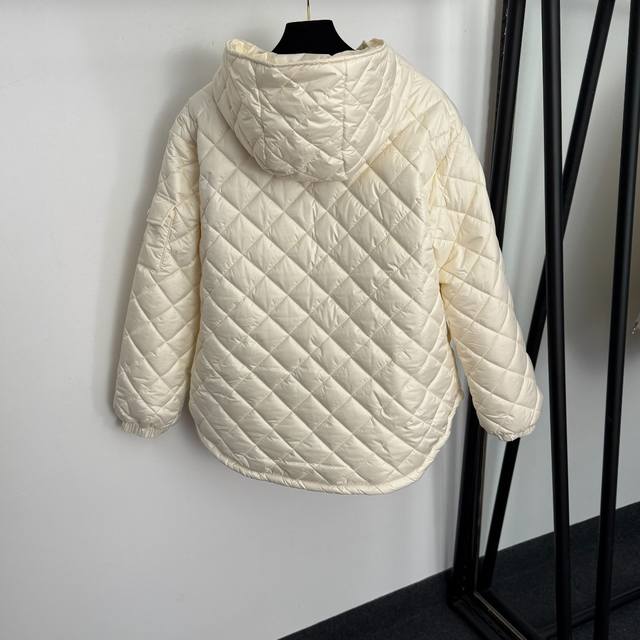 Style No. 20259313 Moncler* New style long-sleeved hooded cotton jacket with side badge embroidered pockets and diamond pattern, off-white, black, size S, M, M: shoulder width 51cm, chest 118cm, sleeve length 58cm, length 70cm; weight: 0.630kg DDD