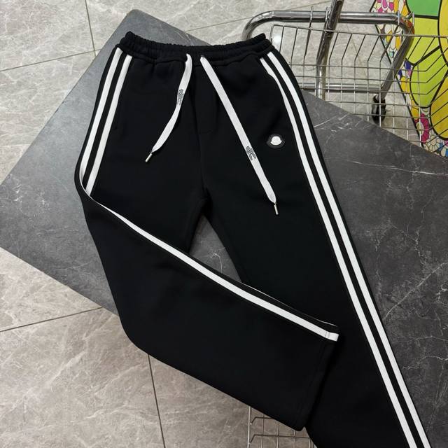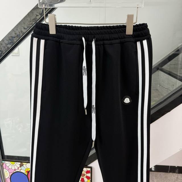 Moncler iron label striped drawstring webbing straight-leg sweatpants