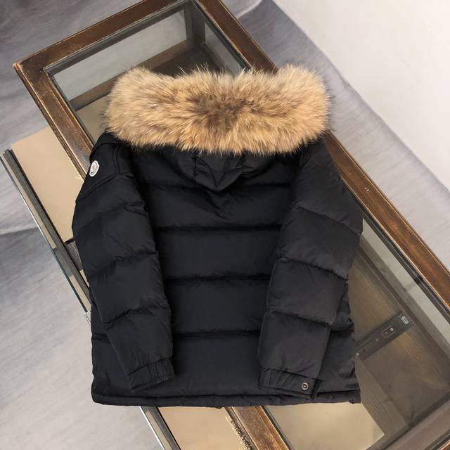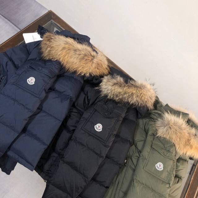 90% down filling, the fullness of the down is visible to the naked eye. The fur collar and hood are both removable ~ very practical, the fabric is soft and texture