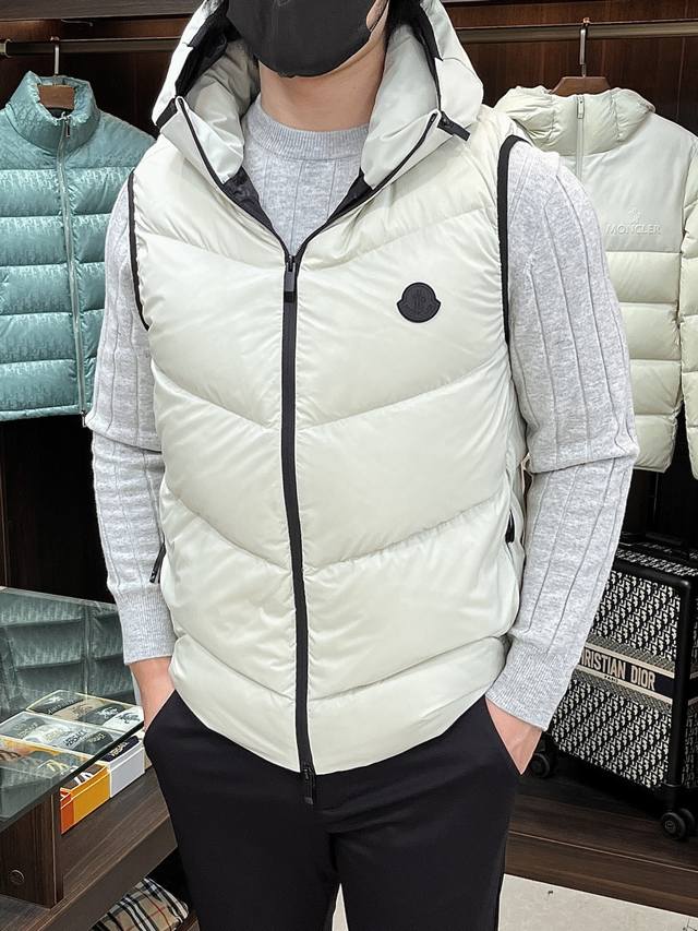 Featured Moncler 2025 latest fashion designer down jacket/vest. A top-tier, luxurious down jacket for winter, with a detachable hood. Filled with 90# white goose down. The classic logo on the chest and other details showcase exquisite craftsmanship. The sophisticated structural tailoring allows for diverse masculine looks. Slim and tailored, it meets the current trend of layering and is a versatile style for everyday wear! Colors: Black, White Sizes: M-3XL New 2025 Release