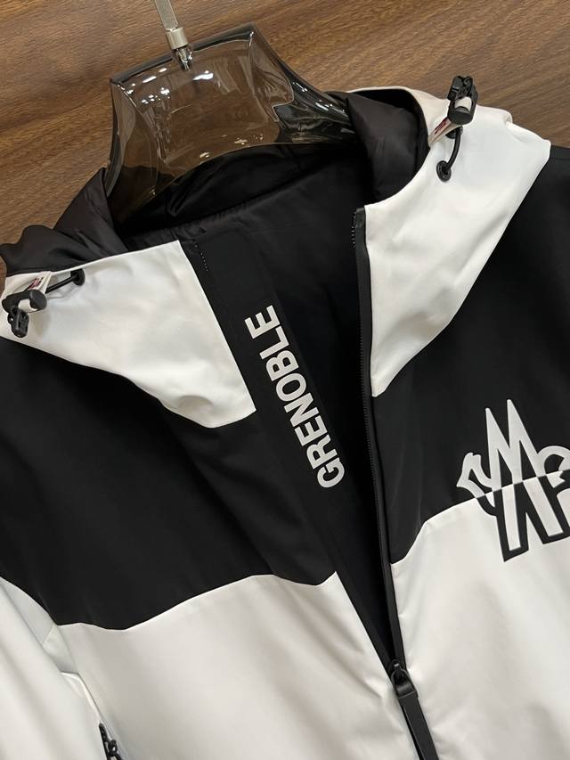 Featured: Moncler's 2025Ss early fall new release, the Moncler hooded jacket. This autumn's hottest padded jacket features a black and white patchwork design, an L-shaped scissors logo printed on the chest, and a black scissors patch on the upper arm. This jacket is comfortable and slimming, with a lazy and casual style. Combined with clean and simple colors, it is particularly eye-catching and suitable for everyday wear. We are introducing sportswear items embellished with vibrant prints!