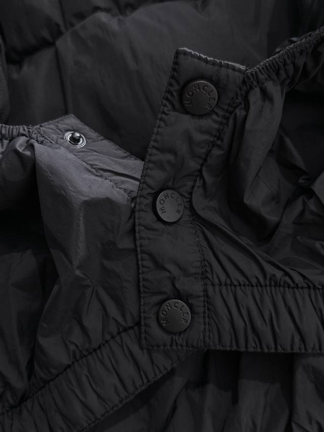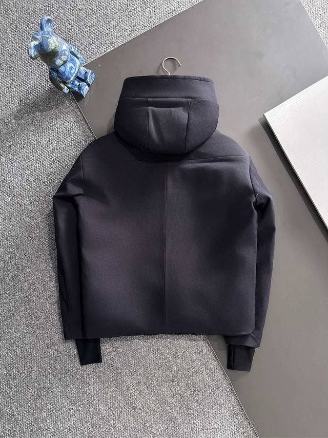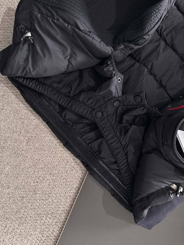 High-end edition, look for the details. Moncler Praz Drawstring Hood Cropped Down Jacket. The Praz Drawstring Hood Cropped Down Jacket is a piece from the Moncler Autumn/Winter men's collection. Primarily black, it combines style and practicality. This Praz down jacket features a simple yet elegant black design. Its unique drawstring hood adds a touch of style while providing extra warmth in cold winds. The cropped cut accentuates a masculine look. Made from a custom, thick, stretch-knitted fabric, this jacket offers exceptional warmth, elasticity, and abrasion resistance. The custom knitting process creates a tighter, more durable fabric, effectively blocking out cold air. Lined with high-quality 90% white goose down, the jacket's warmth is guaranteed. The black color scheme makes it a classic and versatile piece, perfect for both formal and casual occasions. Its custom stretch knit, thick, warm fabric and unique design make it stand out from many down jackets, becoming a top choice for men in the fall and winter.