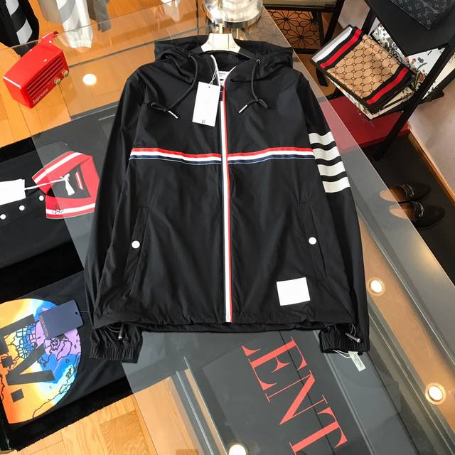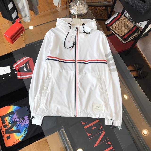 New Spring/Summer couple's style sun protection jacket from the renowned brand, featuring original hardware fabrics, a Moncler circular sleeve label, a red, white, and blue striped design, Moncler logo hardware, and a four-stripe sleeve logo. The jacket features all three logos, a simple and stylish design, and is suitable for both men and women, creating a stylish and stylish look.
