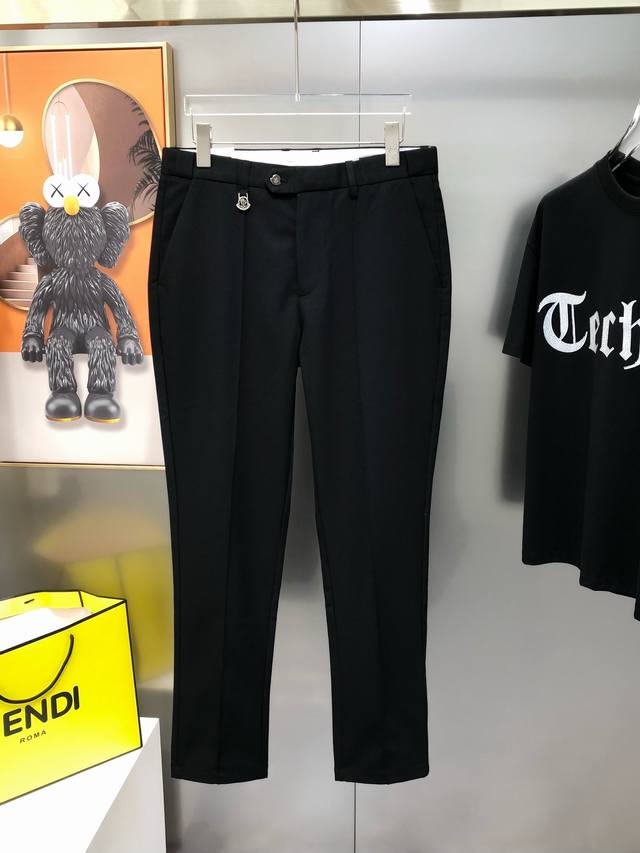 M*Ncler Moncler 2025 Spring/Summer new original men's business casual trousers, sold simultaneously at the counter. High-end products, simple and elegant, versatile, straight-leg, slim fit, customized logo design on the back pocket. Original imported 100% cotton fabric, delicate and ultra-soft! The upper body shape is good, but not tight, which will attract you and make you buy it at first sight! The overall appearance is simple and has no embellishment design! Customized original accessories! Simple, OEM p fine workmanship, commuting style, business casual style, size: 28-36, 35 is shipped the next day.