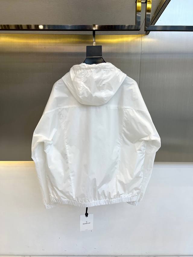 Mon, a new 2025 hooded jacket. Made from imported eco-friendly fabric, it's incredibly tear-resistant! The jacket features a simple yet elegant silhouette, making it lightweight and comfortable. The refined craftsmanship reflects the brand's unique characteristics, and the distinctive logo on the left shoulder makes it instantly recognizable! The elasticated sleeves provide a seamless, windproof fit, and the zipper is custom-made, featuring a high-quality metal design. The design is simple and elegant, perfect for both business and casual wear. 48-56 Model: 173cm, 143lbs, size 50
