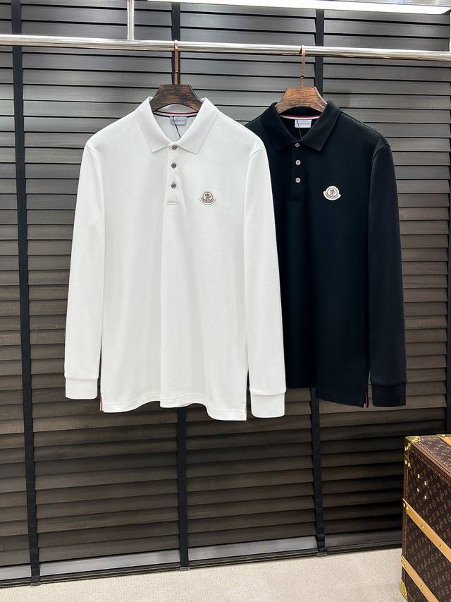 Moncler # 2025 Autumn/Winter New Arrival Long-Sleeve Polo Shirt (DDD) High-end custom-made lapel design! Brand logo heavy-duty design, high-end custom 320g fabric, soft to the touch, comfortable to wear. Exquisite stitching at the boutique level. Fine workmanship. Incredibly handsome look! A must-have item for stylish men! Rarely available through trading company channels, ahead of the official website! Always a unique presence, with extremely high recognizability, always creating fashionable items with a minimalist style, suitable for all ages and genders, easy for anyone to wear! Basic casual round neck cut, slimming and flattering, suitable for various casual outfits, unisex body type, recommended for both men and women! DDD Colors: Black, White DDD Sizes: M, L, XL, 2XL, 3XL DDD