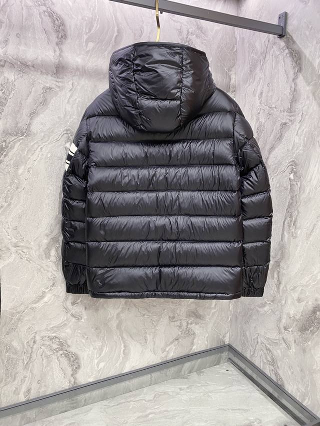 Moncler 2025 Autumn/Winter New Detachable Hooded Down Jacket. Order from a trading company. Because of our focus, we are dedicated! The overall design is simple and refreshing, with a thick and voluminous feel. The tailored fit features a logo detail on the arms, accented with stripes for a dynamic and stylish look. The high-neck design provides windproof protection and comfort. Made with technical microfiber fabric, it is soft and waterproof. Filled with 90% white duck down, it is lightweight, soft, comfortable, and warm. Features include a straight zipper closure, a detachable hood that fits snugly around the neck, and is soft, comfortable, and heat-locking. Understated luxury details throughout. Simple, elegant, versatile, and easy to match, allowing you to express your own fashionable style. Ddd Black 1-5; Ddd Size 1: Shoulder width 48cm, Chest 106cm, Length 67cm, Sleeve length 62cm; Ddd Size 2: Shoulder width 49cm, Chest 110cm, Length 68cm, Sleeve length 63cm; Ddd Size 3: Shoulder width 50cm, Chest 114cm, Length 69cm, Sleeve length 64cm; Ddd Size 4: Shoulder width 51cm, Chest 118cm, Length 71cm, Sleeve length 65cm; Ddd Size 5: Shoulder width 52cm, Chest 122cm, Length 72cm, Sleeve length 66cm; DDD