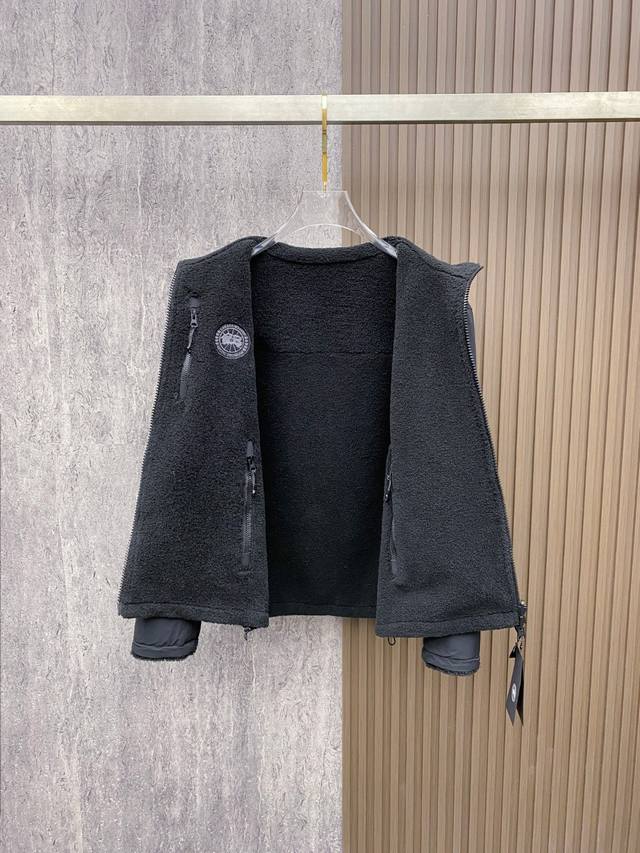 Mon*Cler 2025 Autumn/Winter New Reversible Fleece Jacket. Stand-up collar fleece warm jacket with contrasting sleeve details. Seemingly simple yet full of character. Soft and comfortable fabric. All accessories are original custom-made! Color: Black. Sizes: 48-56.