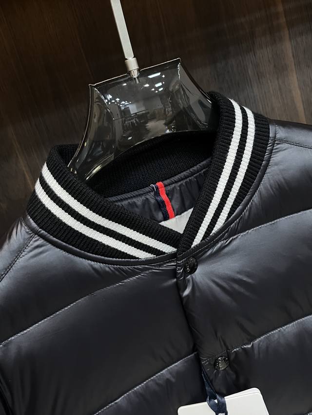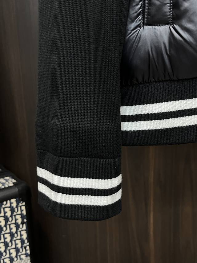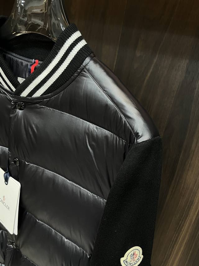 Moncler 2025 latest fashion designer down jacket, Moncler baseball collar down jacket, classic wool knit sleeve patchwork style down jacket, popular down jacket, 90# white duck down filling, every detail shows the craftsmanship. The design changes of advanced structural tailoring show the diverse image changes of men. Slim and neat, tailored to meet the current popular multi-layered wear, versatile style for life