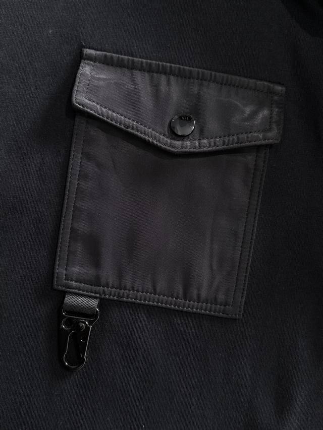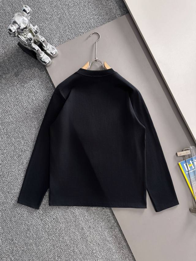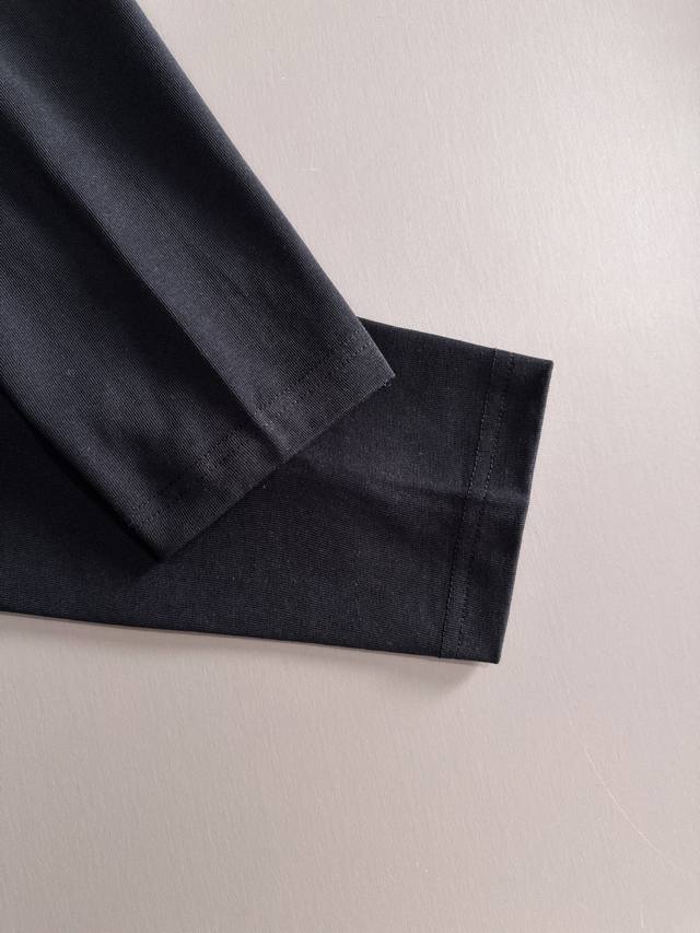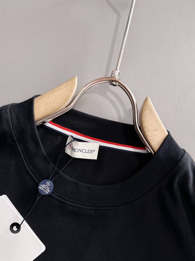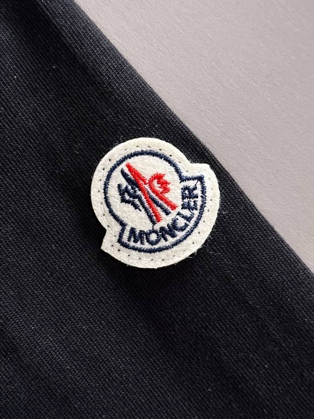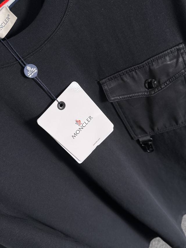 Moncler 2025 new woven pocket patchwork craftsmanship with custom small logo. Unisex long-sleeved T-shirt. Custom 280gsm cotton. Custom-dyed 32s double-strand thread. Complete collar label, hangtag, and main label. Color: Black. Sizes: XS, S, M, L,