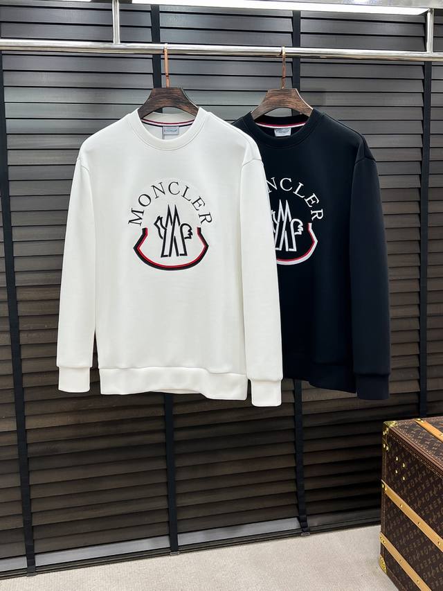 Moncler #25 Autumn/Winter 8-Piece Air Layer Crew Neck Sweatshirt DDD Unisex Fashionable Casual Pullover Sweatshirt! Rarely available from trading company channels, ahead of official website release! Always a unique presence, with extremely high recognizability, always creating fashionable items with a minimalist style, suitable for all ages and genders, easy for anyone to wear! The basic casual crew neck cut has a slimming and flattering effect, suitable for various casual everyday outfits, gender-neutral body type, recommended for both men and women! DDD This sweatshirt is made of imported air layer knitted cotton fabric, which is lightweight, delicate, and soft to the touch, while also maintaining excellent crispness. The inner lining has a tightly arranged terry loop texture like fish scales, providing warmth and breathability without any prickly feeling! The cuffs and hem are stitched with matching dyed knitted ribbed panels, making the wearer even more stylish and handsome! The front of the garment is decorated with a pattern, meticulously printed using top-tier craftsmanship and adorned with brand embellishments, showcasing both luxury and style! Colors: Black, White Sizes: S, M, L, XL