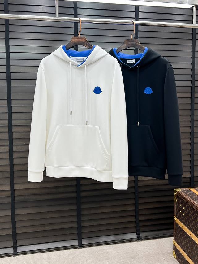 Moncler #25 Autumn/Winter Air Layer Hooded Sweatshirt DDD Unisex Fashionable Casual Sweatshirt! Rarely available from trading company channels, ahead of official website release! Always a unique and highly recognizable brand, Moncler consistently creates stylish pieces with a minimalist style. It's suitable for all ages and genders, easy for anyone to wear! The basic casual crew neck cut is slimming and flattering, suitable for various casual outfits. It's unisex and highly recommended! DDD This sweatshirt is made from imported air layer knitted cotton fabric, which is lightweight, delicate, and soft to the touch, while maintaining excellent crispness. The inner lining features a tightly arranged terry loop texture, providing warmth and breathability without any prickly feeling. The cuffs and hem feature matching dyed knitted ribbed trim, making the wearer even more stylish and handsome! The front of the garment is decorated with a pattern, meticulously printed using top-tier craftsmanship and adorned with brand embellishments, showcasing both luxury and style! Colors: Black, White Sizes: S, M, L, XL