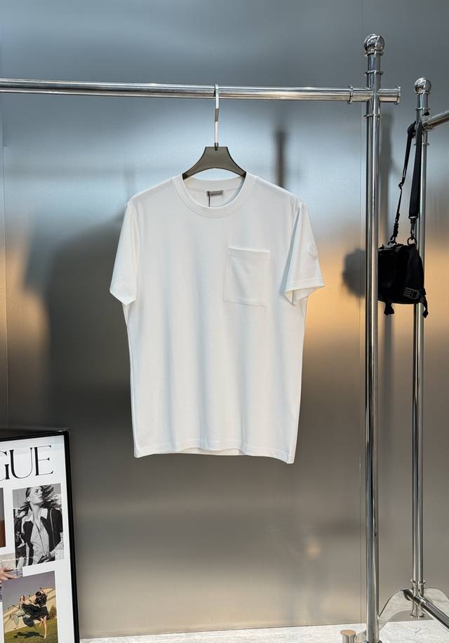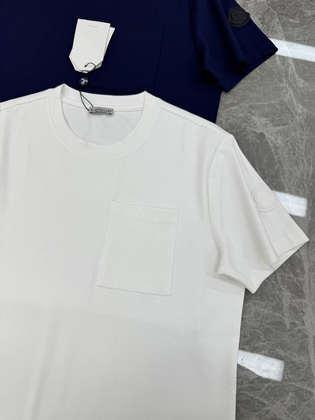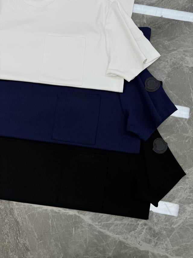 Moncler 25S New Men's Modal Short-Sleeve T-Shirt. Simple and basic design. Chest pocket design. Brand lettering heat transfer design on the chest. Exquisite embroidered black leather patch. Clean, refreshing, simple and generous. A classic fit recommended for all ages! Custom-supplied Modal combed fabric, the surface is skin-friendly and smooth, as comfortable as a baby's! Original hardware accessories. Colors: Black, White, Dark Blue. Sizes: M-3XL Slim fit! S and 4XL can be custom-made. 175cm, 140kg, L recommended.
