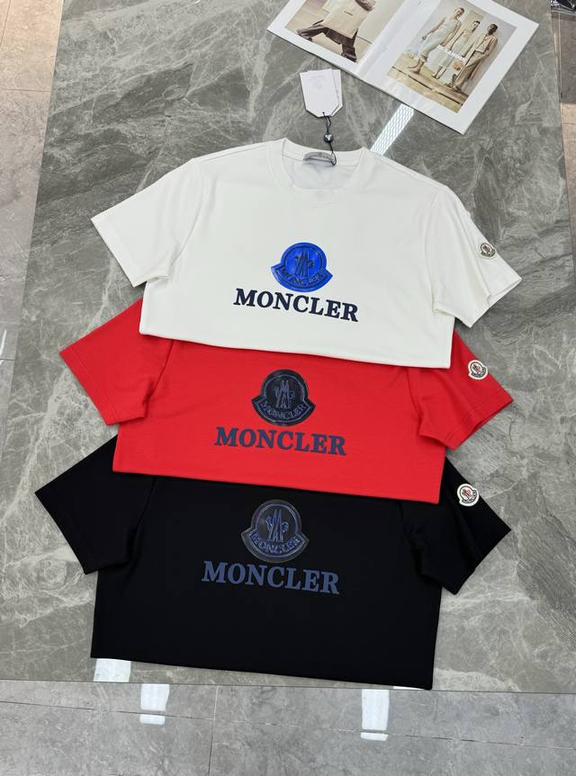 Moncler 25S New Modal T-Shirt. Features a blue Moncler logo and brand lettering on the front, simple yet highly recognizable. The crew neck design is versatile and flattering, suitable for everyday casual wear or couple outfits. Moncler is a high-end French outdoor brand, emphasizing functionality and style. This T-shirt perfectly reflects the brand's aesthetic and pairs well with jeans or sweatpants, easily achieving a minimalist look. Made with soft and comfortable G Modal fabric, it feels great against the skin! Colors: Black, Red, White. Sizes: M-3XL, S and 4XL are available for custom orders. For someone 175cm tall and weighing 140kg, L is recommended.