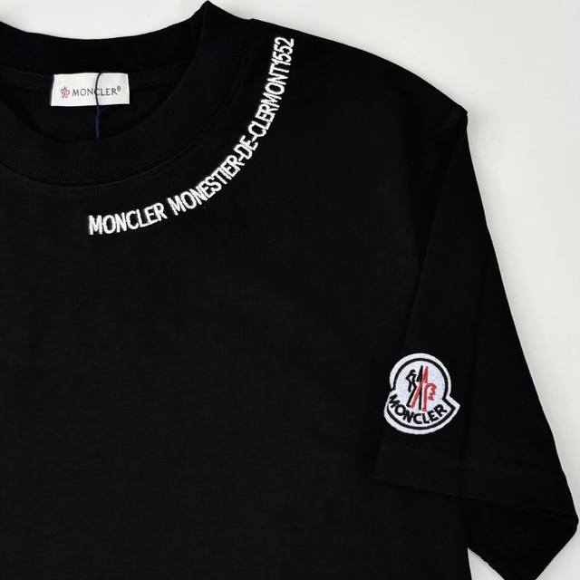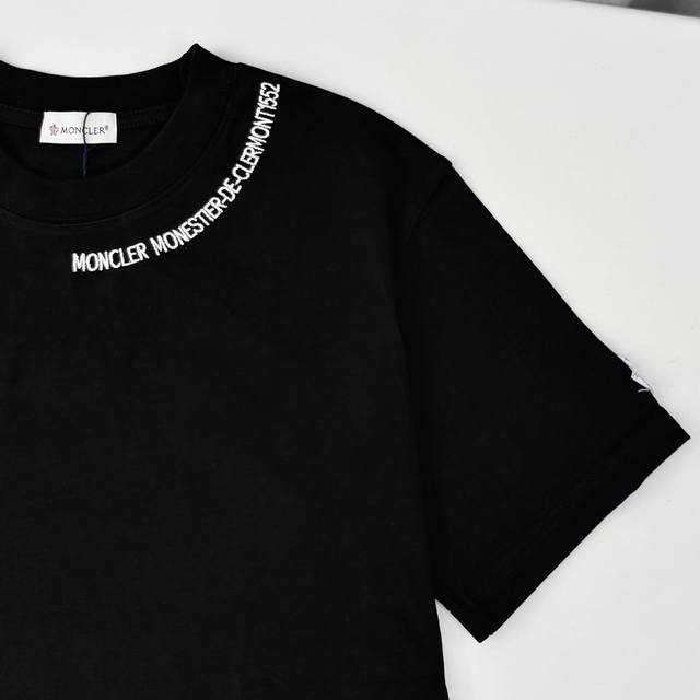 Moncler 3D three-dimensional precision embroidery with large logo embroidery, heavy craftsmanship, round neck pullover, short sleeves, double yarn pure cotton, 300g