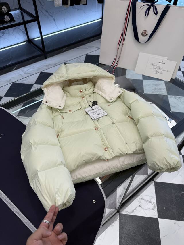 Moncler Erea 2025 popular small puff women's square quilted hooded short down jacket. Super full filling. More real photos show.
