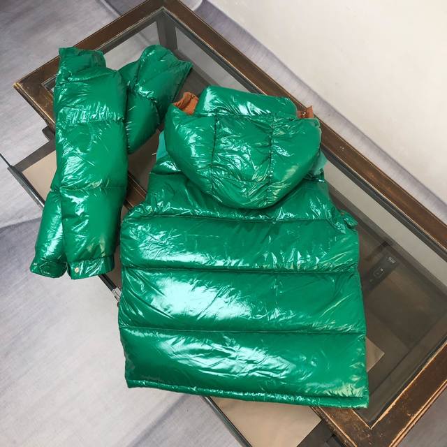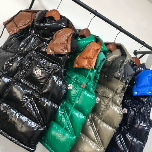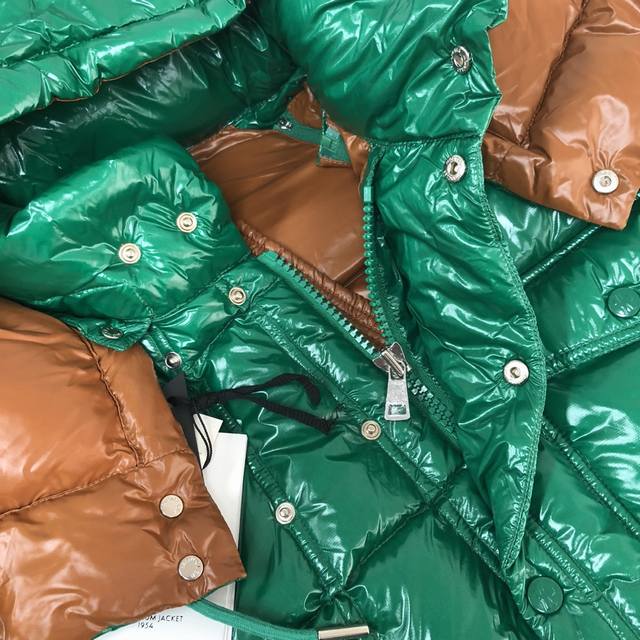 Mon*Cler Karakorum Down Jacket with Detachable Sleeves, Two-Way Design ~ This down jacket is crafted from lustrous, tear-resistant fabric, showcasing the recognizable Mon.Ler aesthetic. Contrasting shoulders complement the patchwork hood lining, creating a rich color palette. Originally created in 1954 for the first explorers to summit K2, the Monc.Er Karakorum down jacket was designed to protect against inclement weather and features a hood and zipper and double-button closure for exceptional warmth. The jacket can be worn on your back using internal straps for a comfortable fit. The sleeves are easily removable, allowing the jacket to be converted into a vest. The signature chest patch pocket adds a finishing touch.