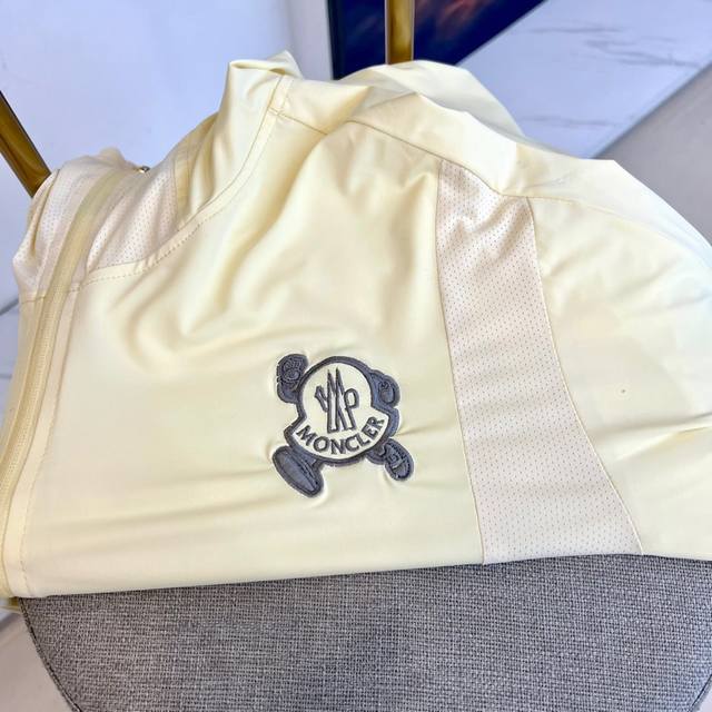 Moncler Men's Hooded Casual Jacket, Spring/Summer Thin Outerwear with Sun Protection. Made of ultra-lightweight four-way stretch sun-protective fabric with fully taped seams for waterproof and breathability. Sun protection rating UPF140+, excellent water repellency (reaches level 4 after washing), absorbs sweat and wicks away moisture to keep you dry and comfortable. Lightweight and stylish, soft and smooth, with nylon trim and 15% stretch stretch fabric for durability and elasticity, giving the garment a strong sense of structure. An excellent choice for casual outdoor wear. Sizes M-3XL. Model 173cm, 140kg, wears size L.