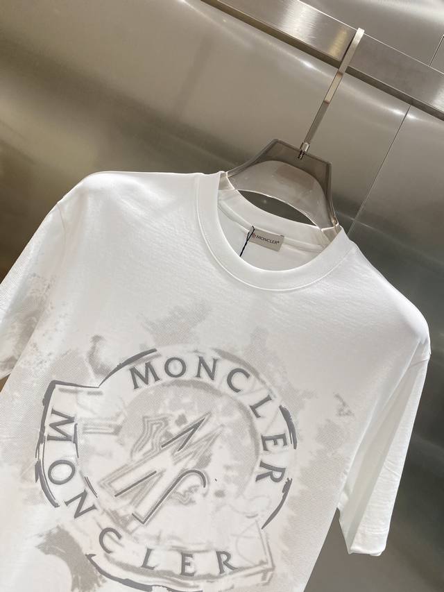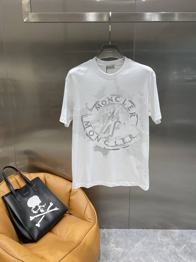 Moncler ink-splashed T-shirt with dark high-end classic base, ink-splashed texture brand logo, version is slightly loose M-3Xl next day
