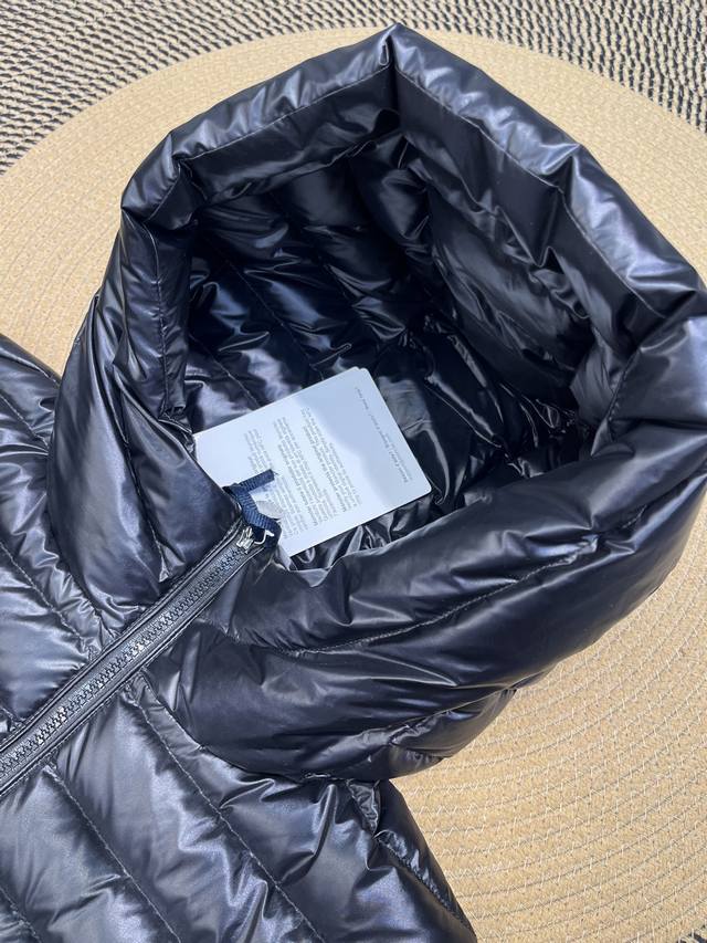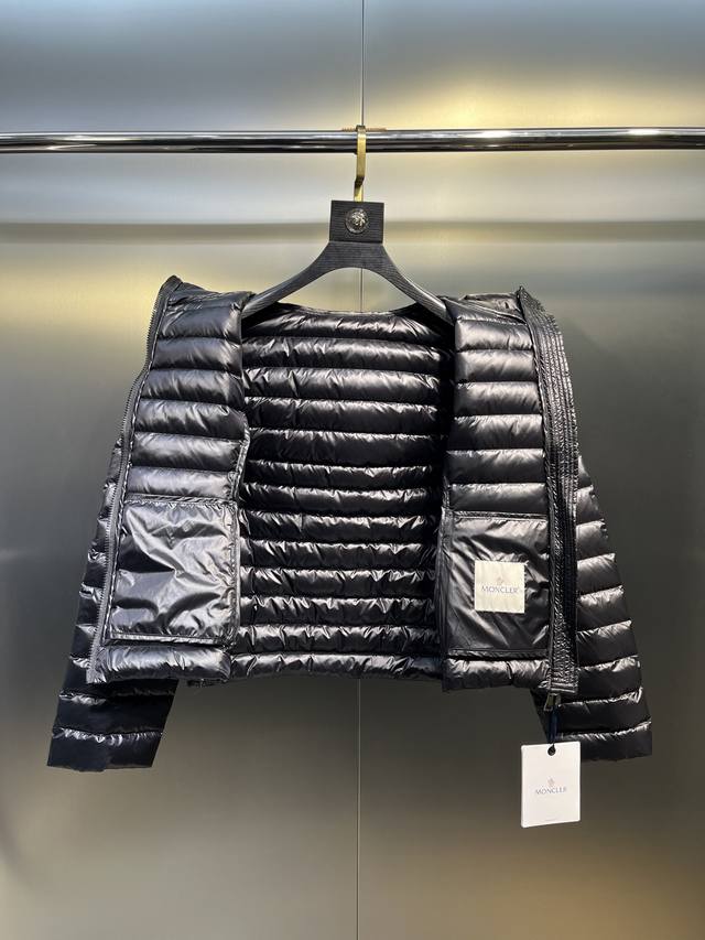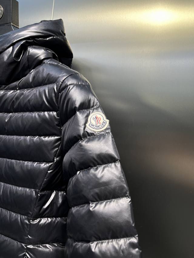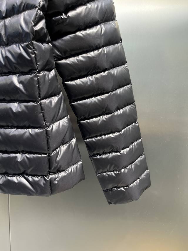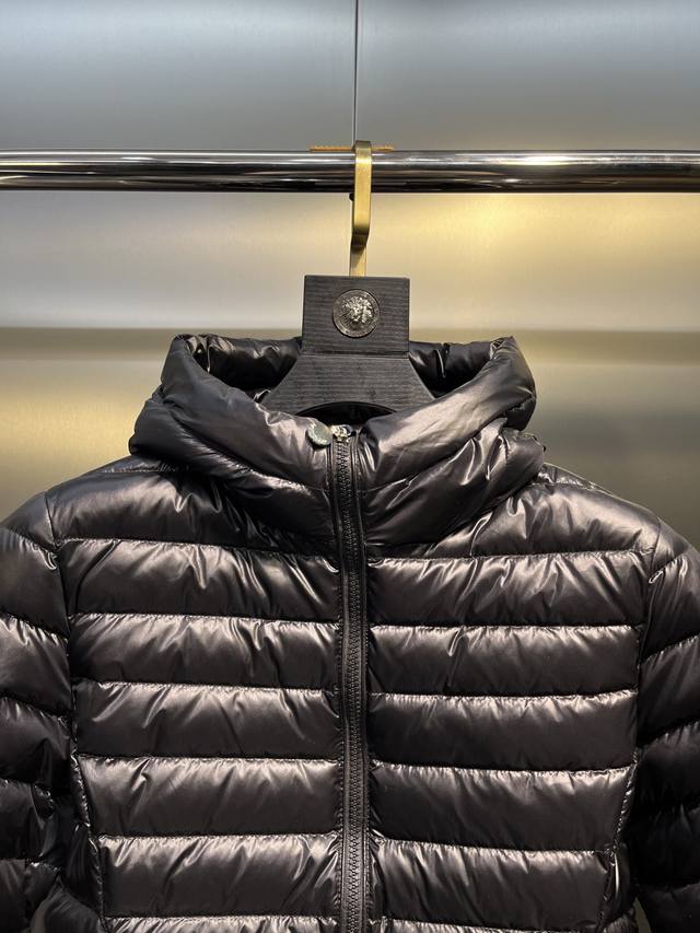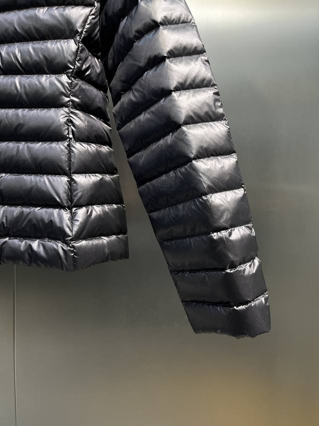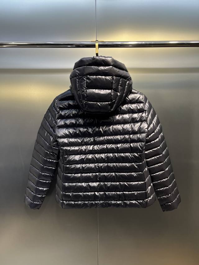 Leg Down Jacket Made of Longue Saison Fabric, Perfect for Mild Weather. This nylon fabric provides warmth without the bulk. The cropped design features a classic hooded silhouette with a nipped waist for a smooth, feminine look.