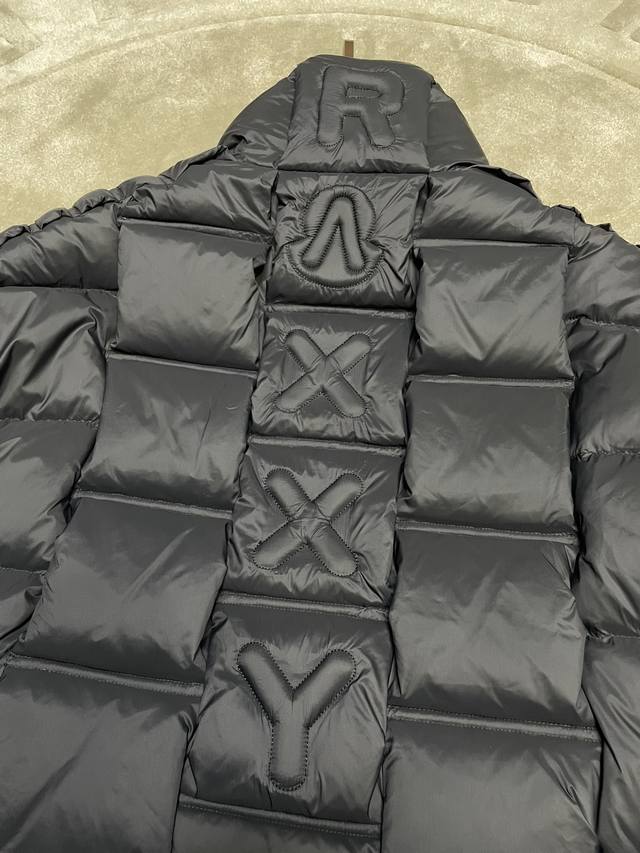 This unisex down jacket is part of the Moncler X Christopher Raxxy collection, featuring decorative elements that evoke the concept of a stairway to dreams.