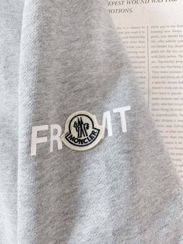 offers a soft, skin-friendly feel for a comfortable fit. The classic round neckline contours to the neck for a simple yet elegant look. The exquisitely crafted embroidered brand logo on the chest showcases the brand's identity. The sleeves feature brand-related patches and detailed text prints for a rich visual impact. The circular lettering print on the back is a striking design statement, its white contrasting against the grey body creating a striking and trendy look. The ribbing at the cuffs and hem provides just the right amount of stretch for comfort while maintaining a secure fit and enhancing the overall look. From the fabric to every detail of the print and embroidery, the brand's meticulous attention to detail is evident, allowing for effortless, stylish, and sophisticated styling.